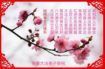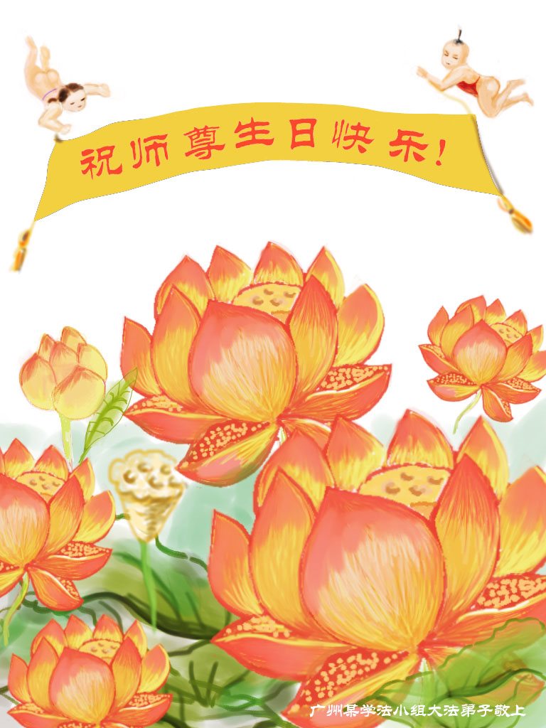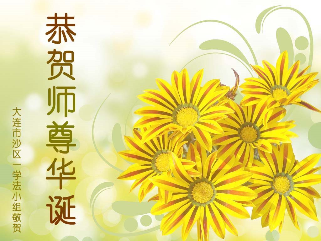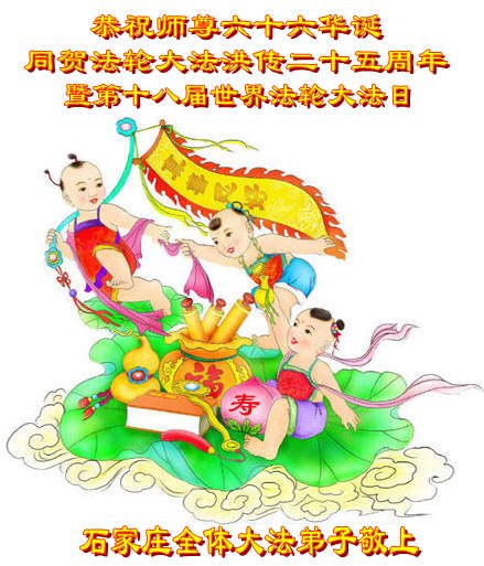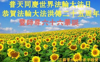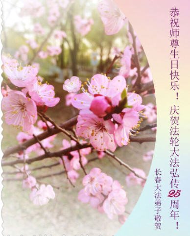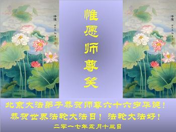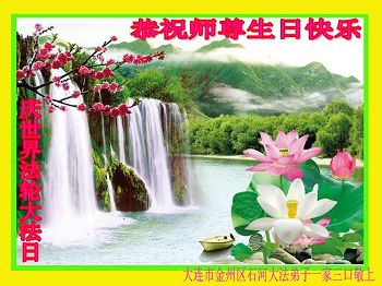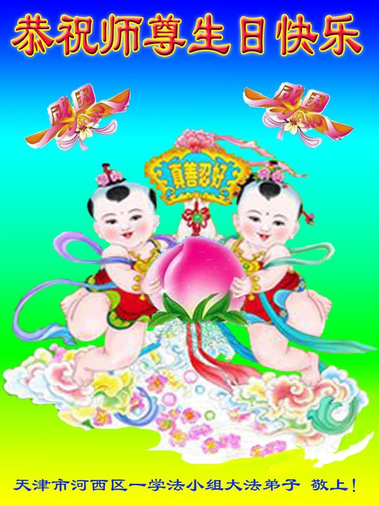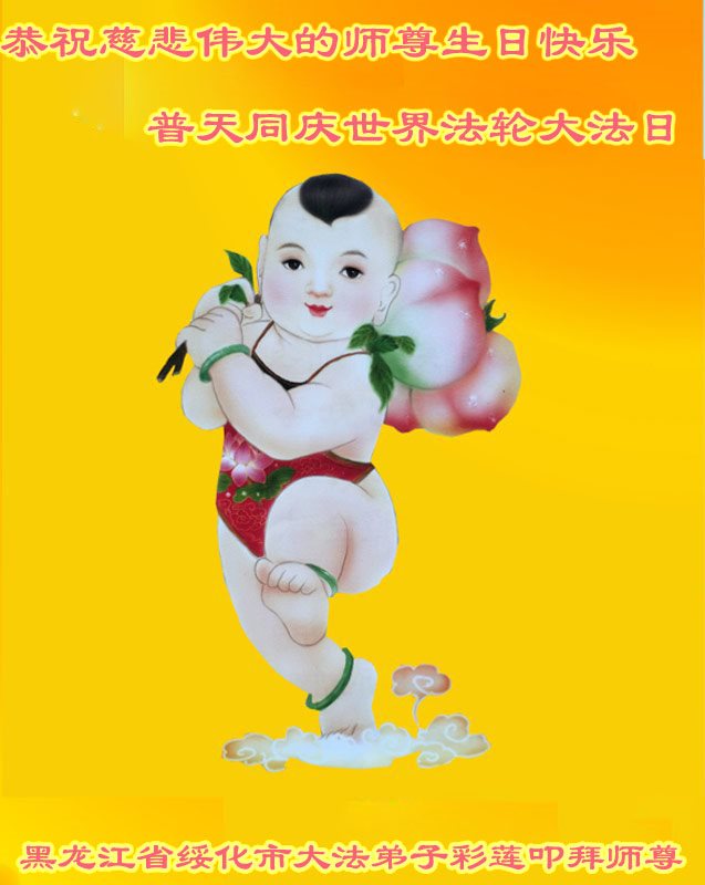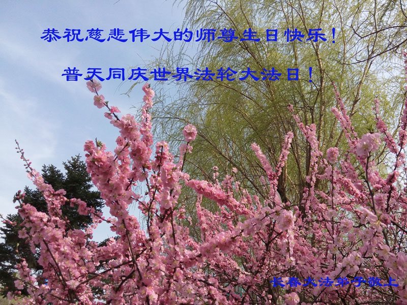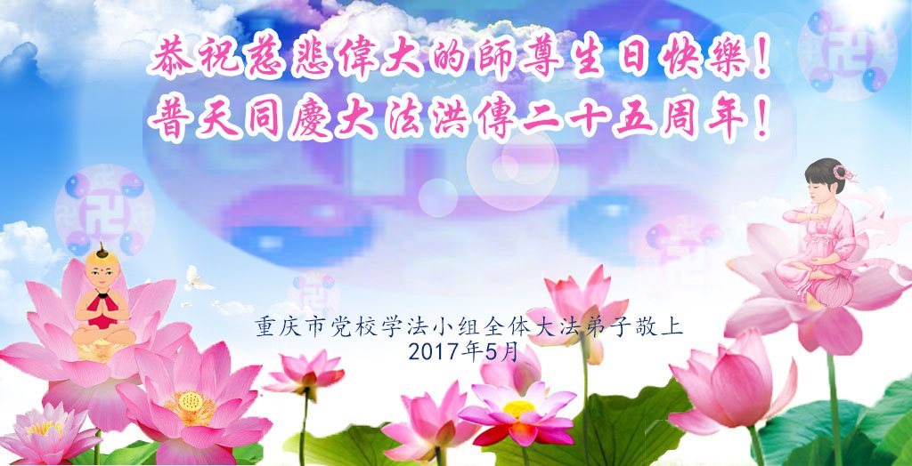 师尊您好!弟子们无法用语言无限感恩师尊的慈悲苦度!叩祝慈悲伟大的师尊生日快乐!并与世界各地各位大法弟子及明真相的世人普天同庆法轮大法洪传二十五周年暨欢庆第十八届世界法轮大法日!
