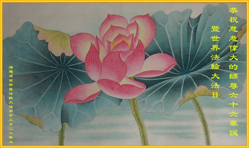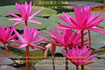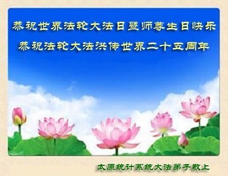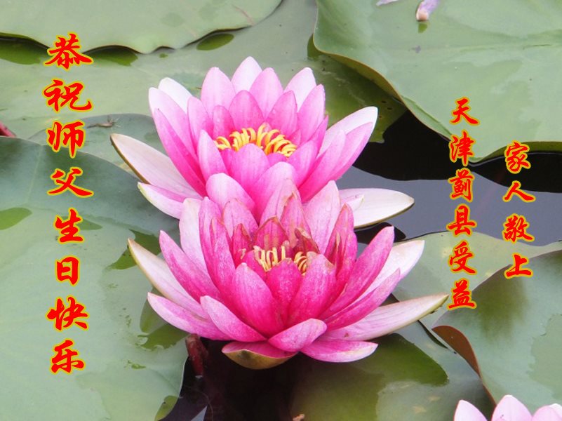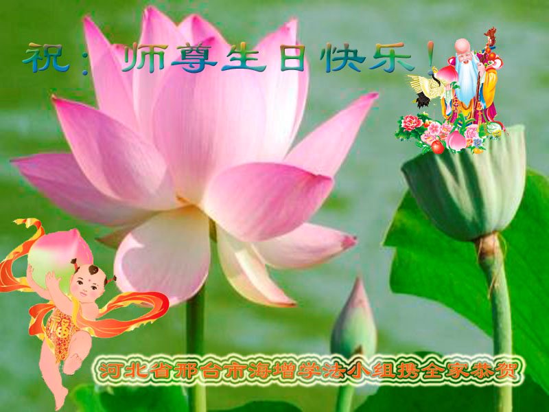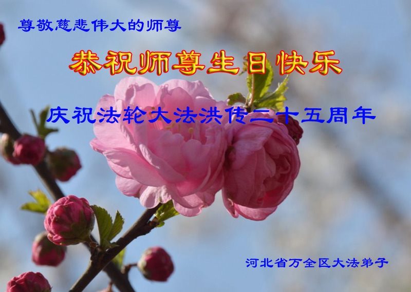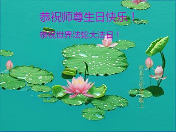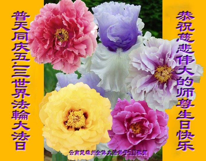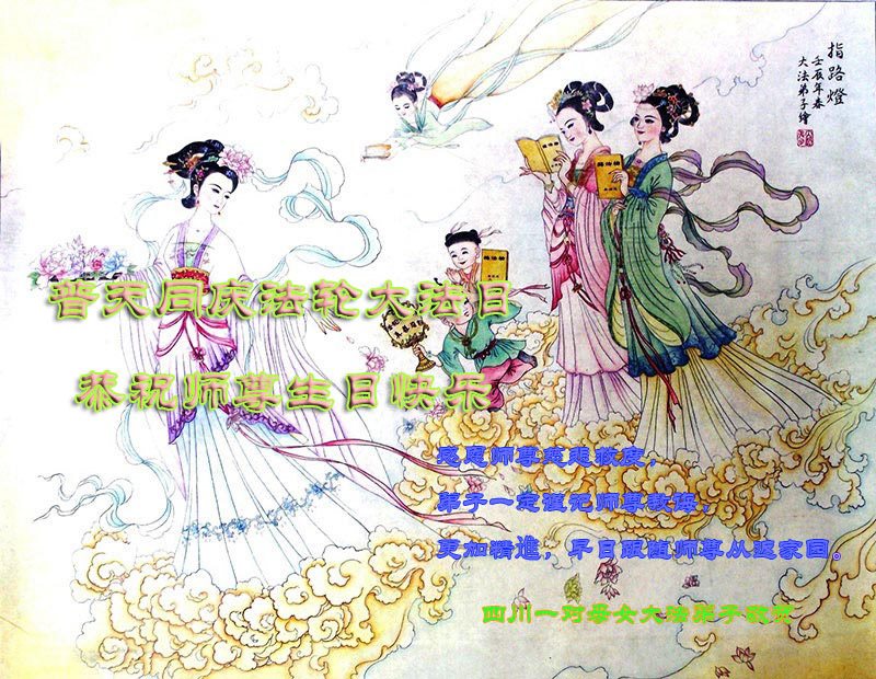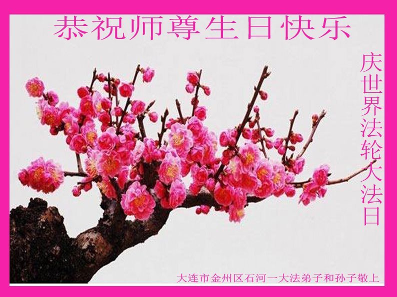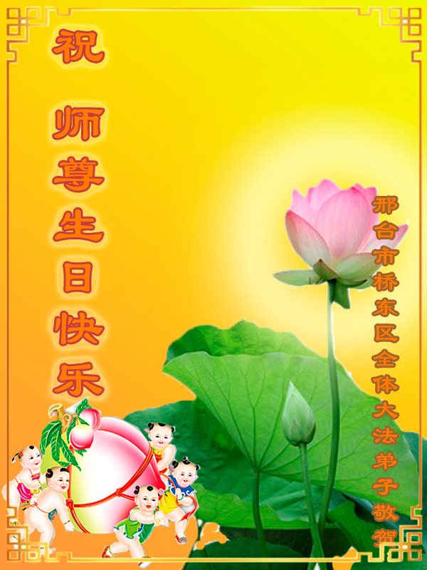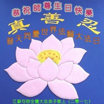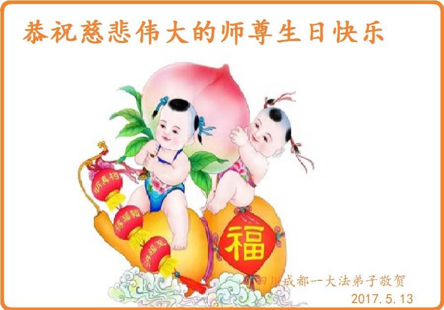 师尊您好!弟子们无法用语言无限感恩师尊的慈悲苦度!叩祝慈悲伟大的师尊生日快乐!并与世界各地各位大法弟子及明真相的世人普天同庆法轮大法洪传二十五周年暨欢庆第十八届世界法轮大法日!