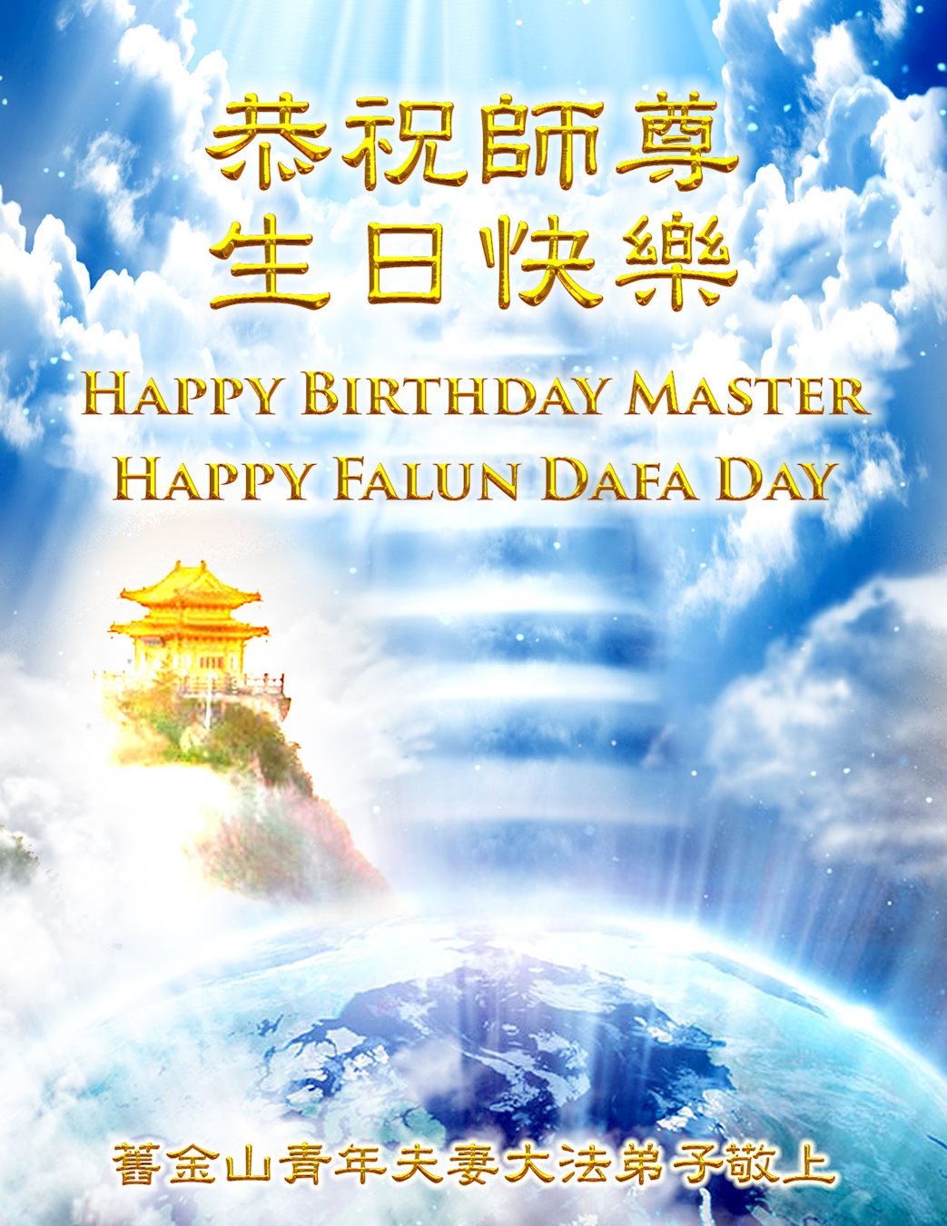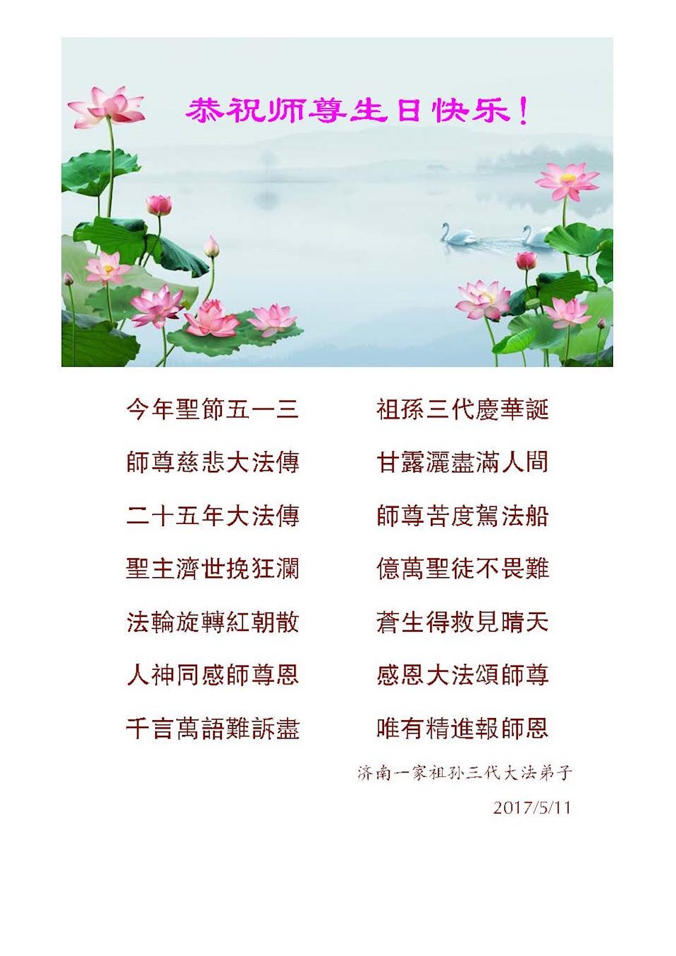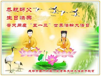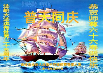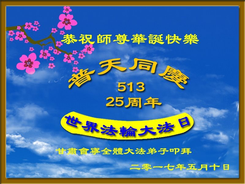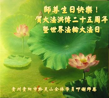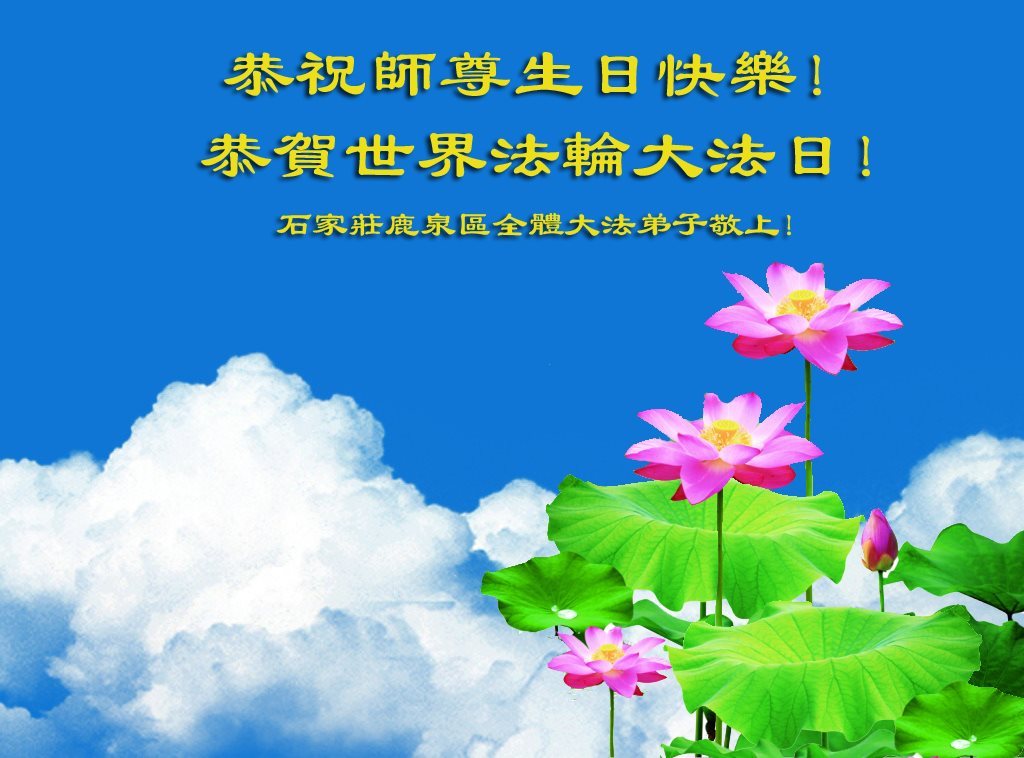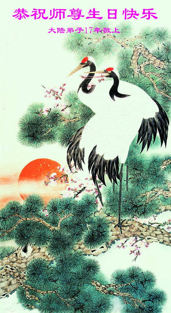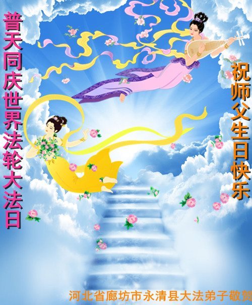 师尊您好!弟子们无法用语言无限感恩师尊的慈悲苦度!叩祝慈悲伟大的师尊生日快乐!并与世界各地各位大法弟子及明真相的世人普天同庆法轮大法洪传二十五周年暨欢庆第十八届世界法轮大法日!