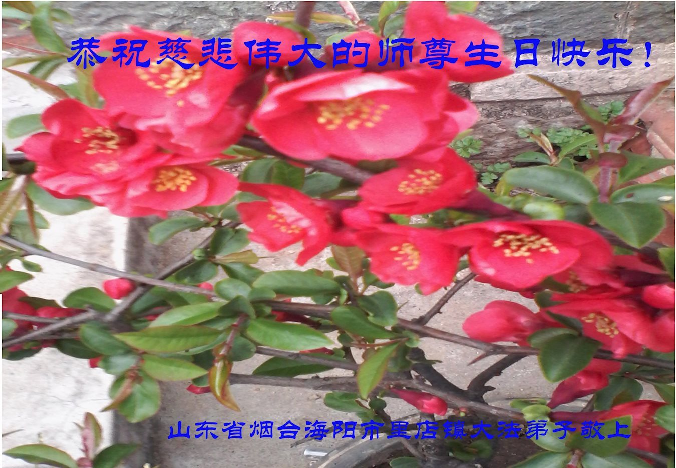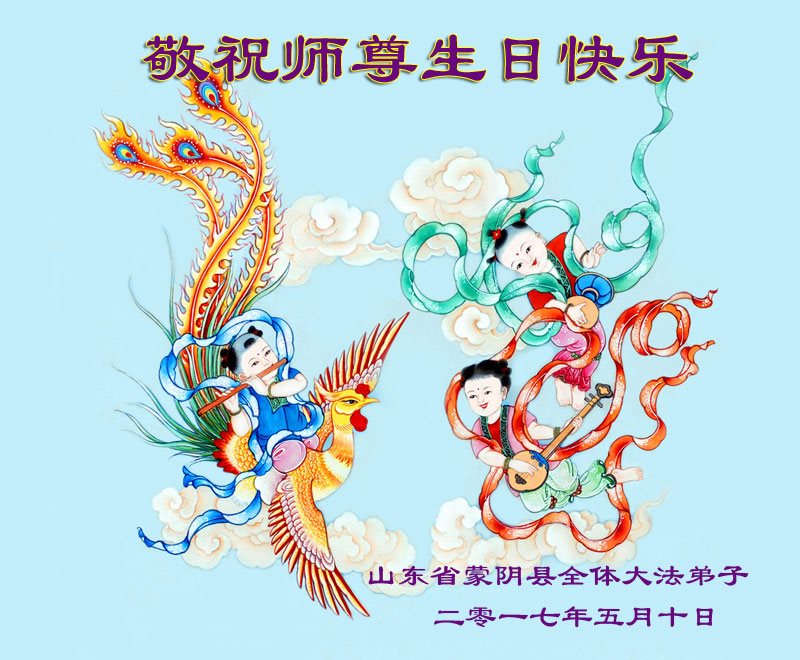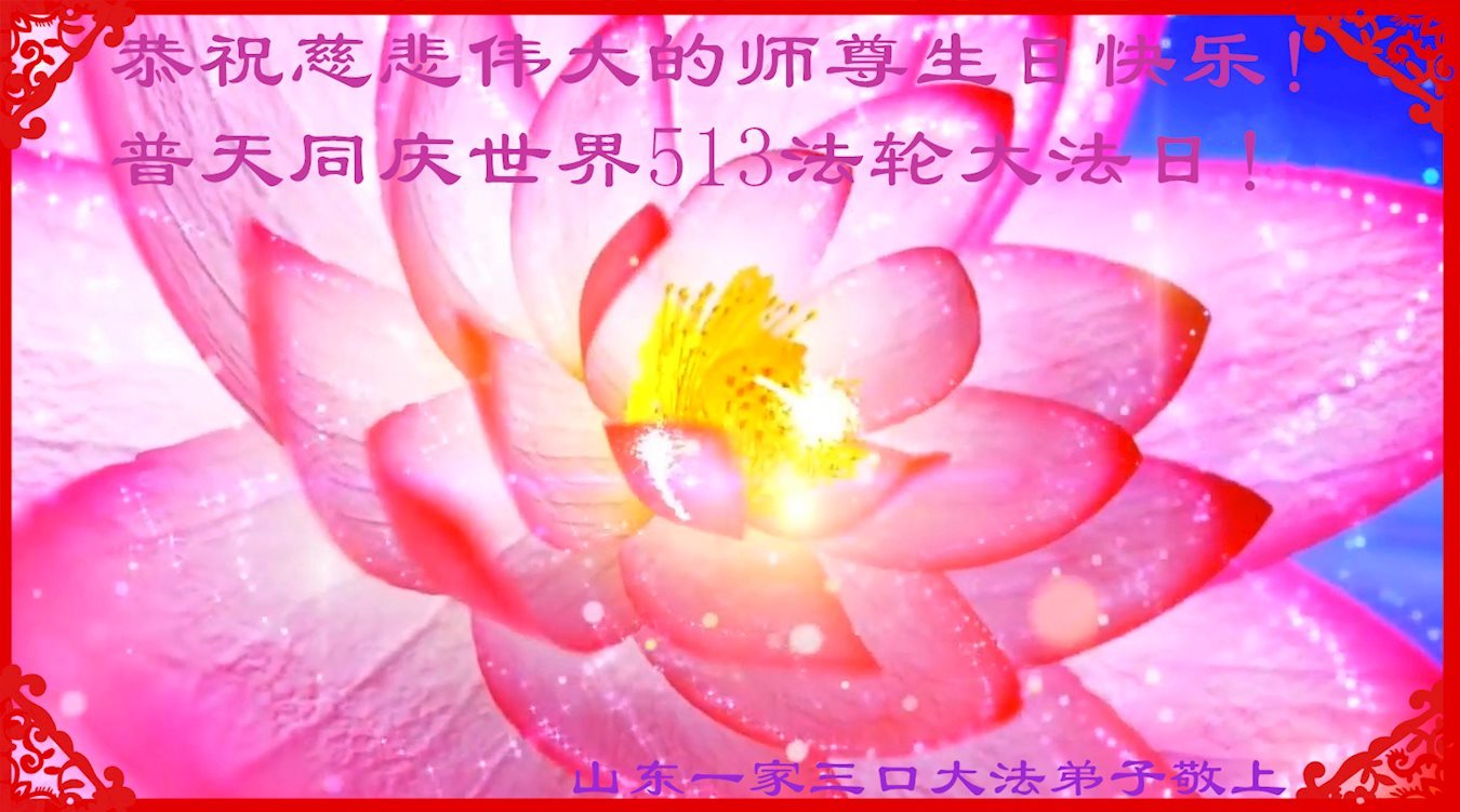 山东烟台龙口一家七人大法弟子和明白真相的家人,恭祝慈悲伟大的师尊生日快乐!普天同庆法轮大法日!