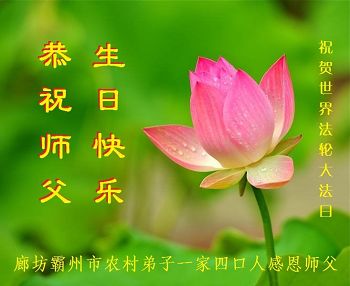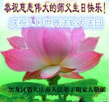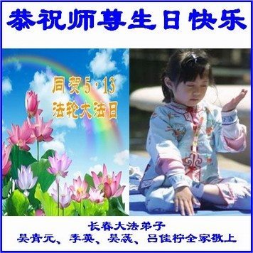 普天同庆世界法轮大法日!清原县大法弟子及明真相的家人们和邻居同修向慈悲伟大的师尊问好!弟子们感谢慈悲伟大的师尊慈悲救度!弟子们跪拜师尊,恭祝慈悲伟大的师尊生日快乐!