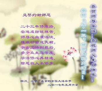 四川遂宁市大法弟子家属恭祝师父生日快乐!