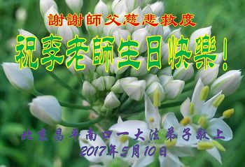 在此,我恭祝李洪志老师生日快乐!