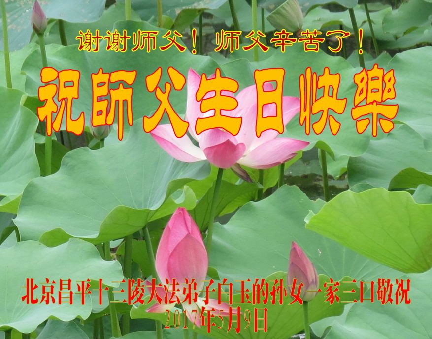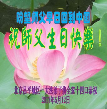 师父的生日马上就要到了,我代表家人向慈悲的大法师父问好!恭祝师父生日快乐!