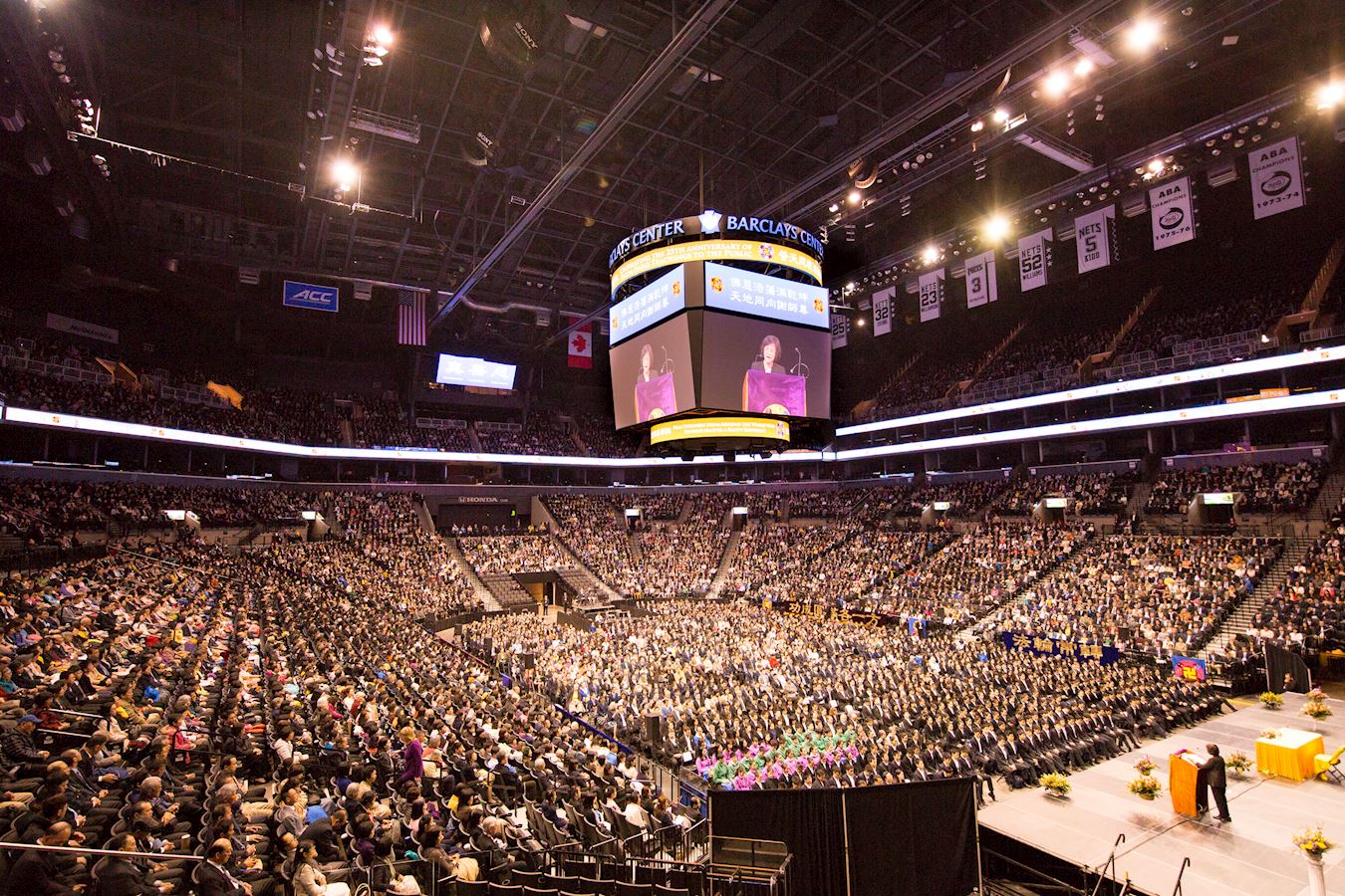【明慧网二零一七年五月十六日】(明慧记者章韵纽约报道)二零一七年五月十四日,纽约法轮大法修炼心得交流会在纽约市布碌伦区的巴克莱中心(Barclays Center)体育馆隆重召开。上万名来自五十八个国家和地区,不同族裔、不同文化背景的法轮功学员参加了这次交流会。十三位学员分享自己在修炼路上如何向内找修好自己、救度众生的心得体会。大约在下午两点五十分左右,李洪志师父亲临会场,为大法弟子讲法和解法约两个小时。