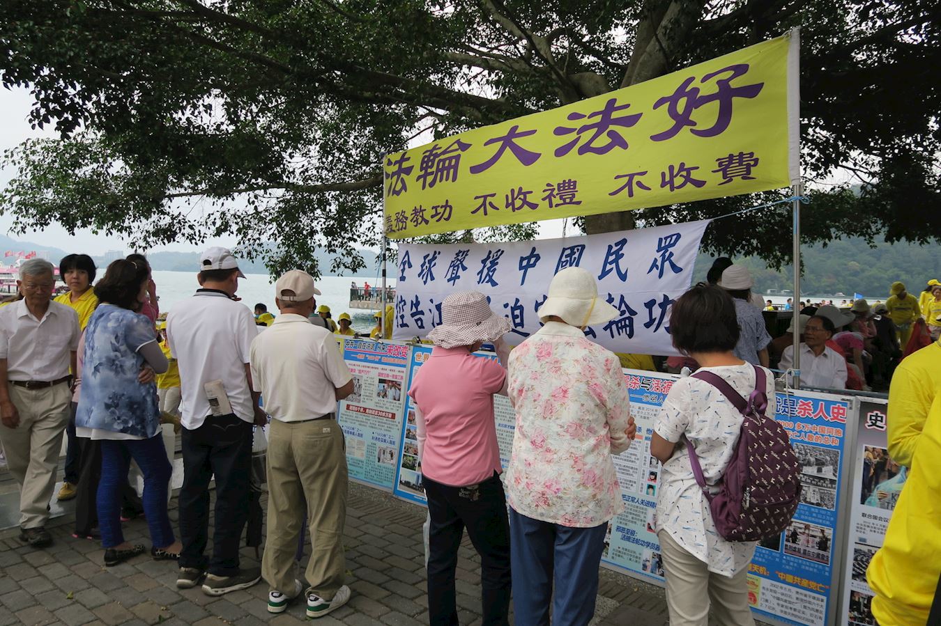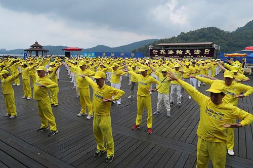 ![]() 图1:台湾中部部份法轮功学员聚集在日月潭伊达邵码头庆祝世界法轮大法日,并恭祝伟大的师尊“生日快乐”! |