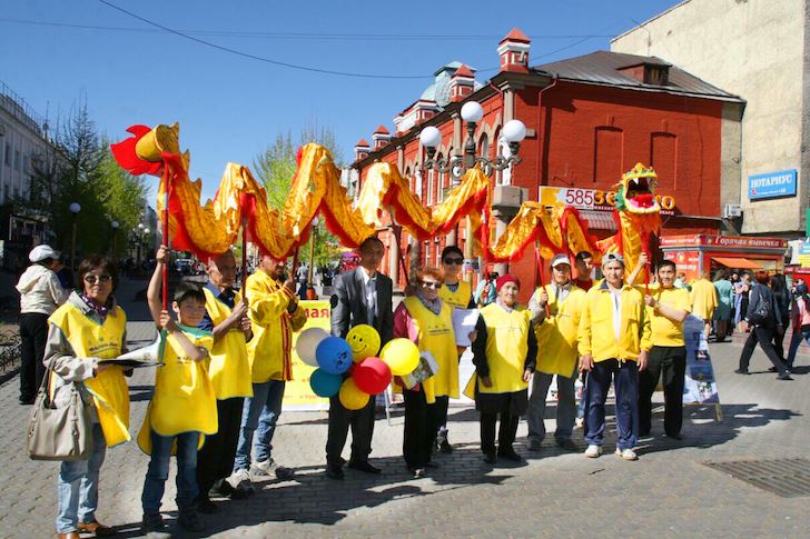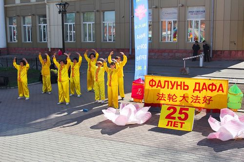乌兰乌德大法弟子在当地阿尔巴特街举行了活动。市民们了解了功法信息,观看了功法。大法弟子们还伴着音乐表演了舞龙。