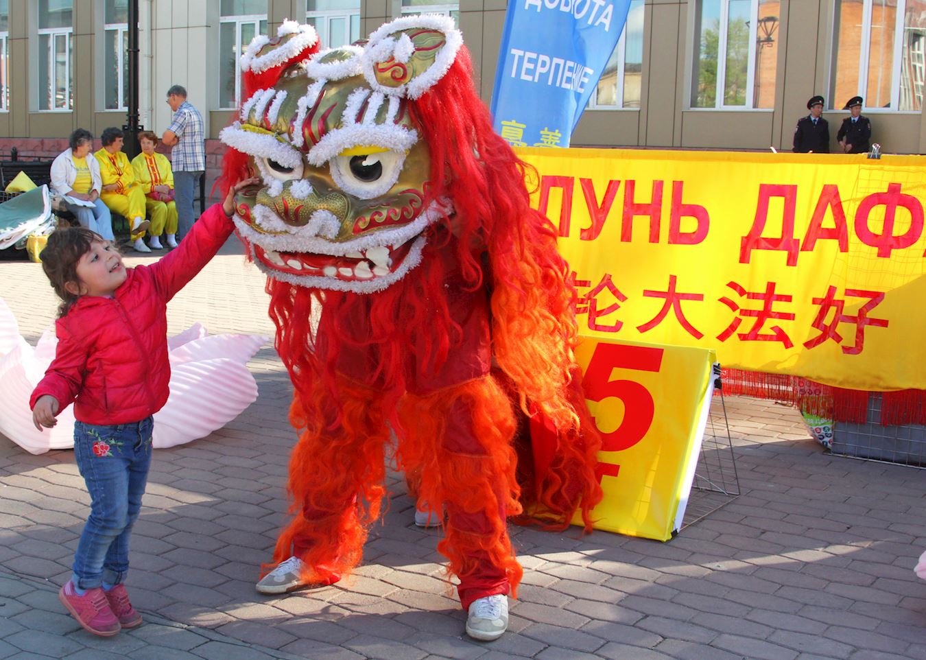 伊尔库茨克市学员们的活动包括功法表演、舞狮子、中国古典舞“净莲”。 许多带着孩子的市民、年轻人和老年人驻足观看,舞狮子给孩子们带来欢乐,许多孩子与狮子合影。