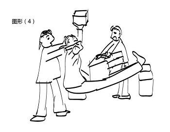 二零一一年一月十二日开始,我被四小队包夹人汪秀芳(白山市人,诈骗犯)进行迫害。开始的一些天,汪秀芳对我实施的是坐一个特小的红色小凳子(这个小凳子是汪特有的迫害法轮功学员的专用工具,此凳子四寸来高,平面五寸长、四寸宽),强制坐在这个小凳子上,双脚要放在两个高凳子叠放在一起的凳子上,人的身体呈现梯形,如图3,一头高一头矮的状态,人的腿上要压上沉重的箱子,数量也是随着时间都在增多,重量是越来越沉,双手还要上举。迫害持续两天的时间后,又强制我双手举着箱子,这种坐姿人很难坐住,双腿上又压放沉重的箱子,数量一天比一天多,双腿的疼痛和包夹人的加重迫害(从早五点到晚上十一点)疼的人整日泪流满面。包夹人在每天的迫害时间里,都是每当双腿疼的受不了的时候,邪恶之人马上过来防止箱子掉下,而且又踏上一只脚,使劲的一下一下的踩,让人疼的更厉害,此时强迫我说诬陷大法和师父的话。日子多了沉重箱子也放不下了,就用绳子绑在我的腿上,我疼痛的受不了时,发出的一声声惨痛的叫声,那也是撕心裂肺的疼痛声,立刻又被另一个包夹拿起的毛巾、枕巾之类的东西立刻把嘴和鼻子捂住、闷上,反复的捂、闷,每次置我于死亡的边缘。如图3、图4。