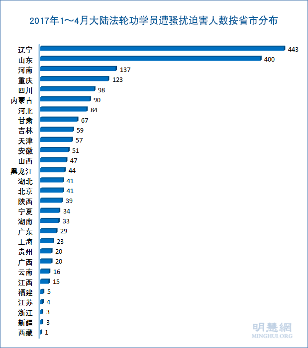 二、1-4月大陆各省市法轮功学员被骚扰情况