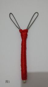 1、做一个鱼竿前端的杈头,我是用细衣撑的铁丝做的(如图1),杈头杆的两根铁丝先用胶带捆绑固定好,再用粗线绳缠绕到所需的粗细,这样线绳不易从铁丝上滑脱,叉杆一般不短于15cm,防止挂时用力将杈头从鱼竿前端管口内被拉脱,用时将杈头插在鱼竿的最前端,用后取下和鱼竿分开放置。