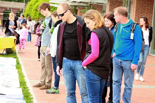 当天有许多费城本地和来自世界各地的游客在反活摘器官征签表上签名,支持法轮功学员反迫害。