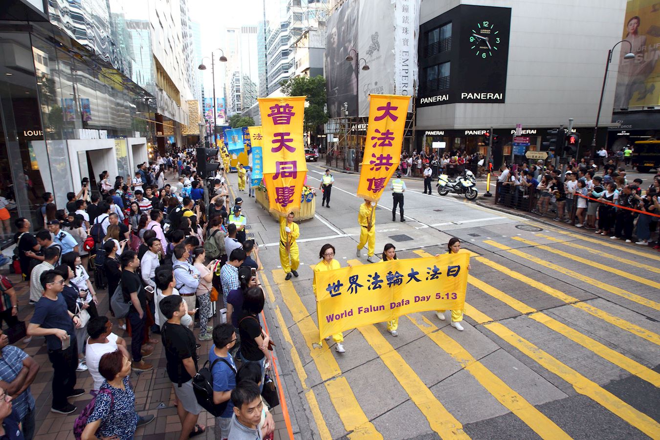 ![]() 图1:香港法轮功学员在港岛举行集会,向法轮功创始人李洪志先生贺寿,并庆祝世界法轮大法日。 |