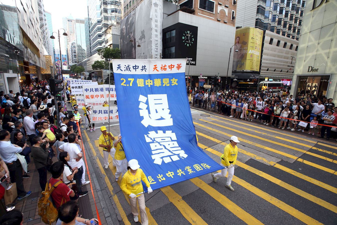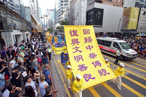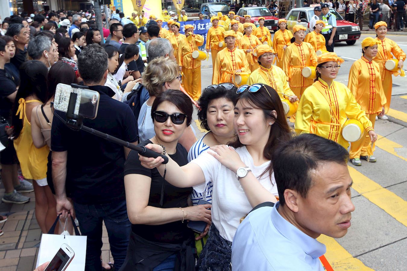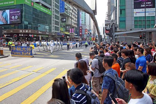 游行队伍的阵势以及每个方阵旗阵鲜明的真相,震撼着沿途的民众及中西游客,很多大陆游客用手机、相机拍下游行画面,表示要带回去告知亲友在香港见识的大场面。