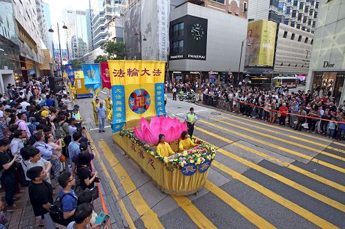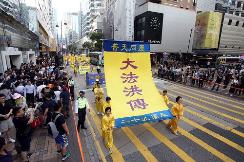 ![]() 图6~11:法轮功学员游行庆祝“世界法轮大法日”,及“法轮大法弘传世界二十五周年”纪念,吸引香港市民及中西游客驻足关注及拍照。 |