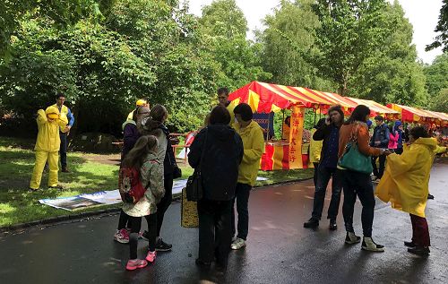 二零一七年六月十一日,苏格兰部份法轮功学员和英国中部地区的一些学员参加了在该市Kelvingrove公园举办的大型活动。在申请这个活动的展位时,法轮功学员通过邮件向组委会的人讲真相,询问能不能在这次活动中做“反对强摘器官”的征签。组委会负责人回复说:“谢谢你寄来的这些(真相)资料。我们很高兴能帮助你们让更多的人知道(这场迫害)。”