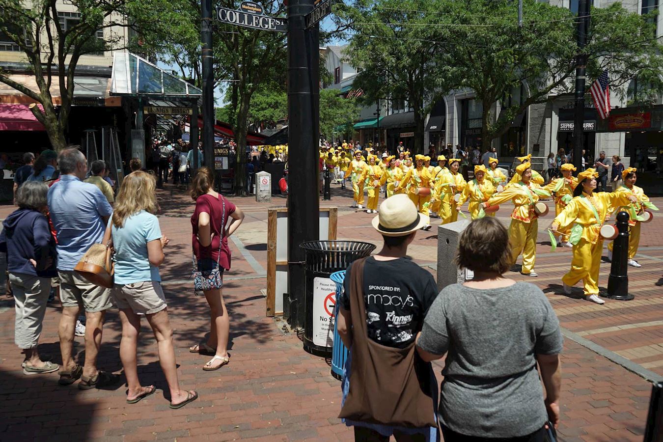 ![]() 图1~2:法轮功学员的游行队伍穿过佛蒙特州伯灵顿市市中心和热闹的街区,吸引路人驻足观看。 |