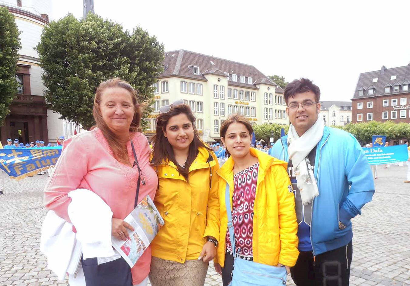 住在杜塞尔多夫的玛媞(Marty)女士从事现实开发研究工作(realistic developer)。她带着三个来德国旅游的印度朋友到莱茵河畔散步,遇到法轮功集会。他们听完中共活体摘取法轮功学员器官的情况后,深感震惊。