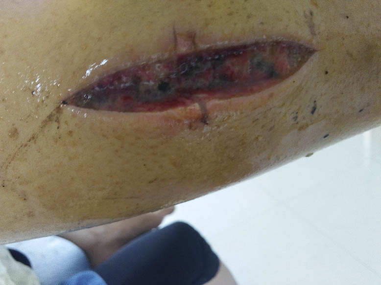 大夫马上要给我打麻药做手术,可是胳膊肿的连麻药都打不進去了,因咬伤至这时已经十五个小时过去了。大夫打电话请示了院长,院长来了说:被蛇咬的时间太长了,没别的办法,就得手术。院长亲自动手,强制打了点麻药,说这点麻药劲过了会很痛,你要坚强点。我想:我不是常人,我是大法弟子,不能疼。手术割的口子有五、六寸长。医生说得有家人护理,还得补充营养。家里农活多,丈夫没有时间,他让舅公公在医院护理我。