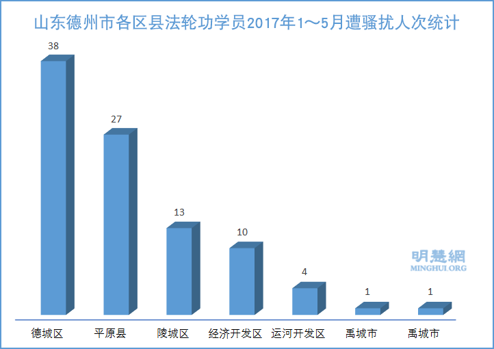 图:山东德州市各区县法轮功学员2017年1~5月遭骚扰人次统计