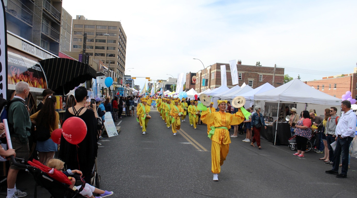 丁香节以游行拉开序幕,在众多游行队伍中,法轮大法的队伍格外醒目:法轮大法的彩旗迎风招展;学员们铿锵的腰鼓给观众留下了深刻的印象。腰鼓队员灿烂的笑容、和整齐的韵律,赢得了现场观众们的阵阵掌声和喝彩。