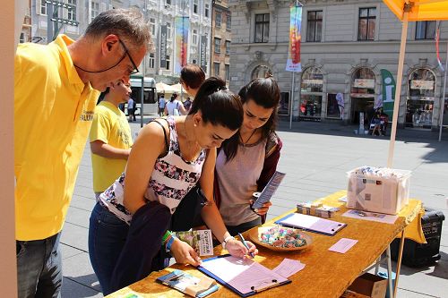 一位奥地利老先生听了法轮功学员的真相后,表示:“我现在才明白,中国有着全世界最美的文化,所以那里也有最邪恶的政府,来把民众和美好的事情隔离。法轮功就是最好的修炼方法,所以也被政府迫害。这是我明白的。”