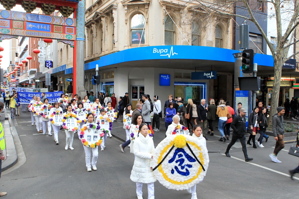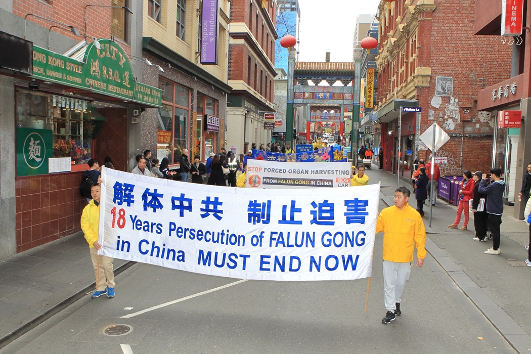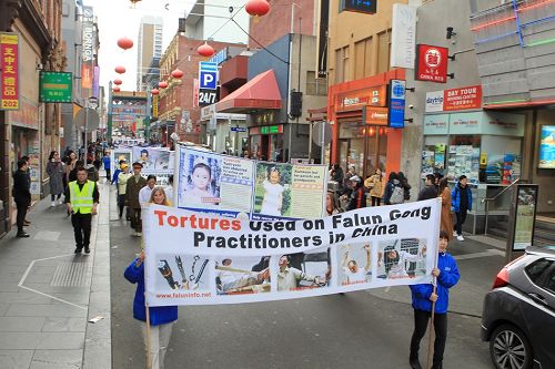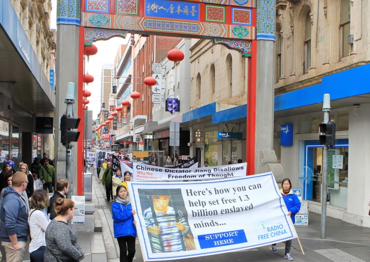 图1-7:穿越墨尔本市中心繁华商业街和唐人街的游行队伍,让市民和游客纷纷驻足、了解真相。 |
