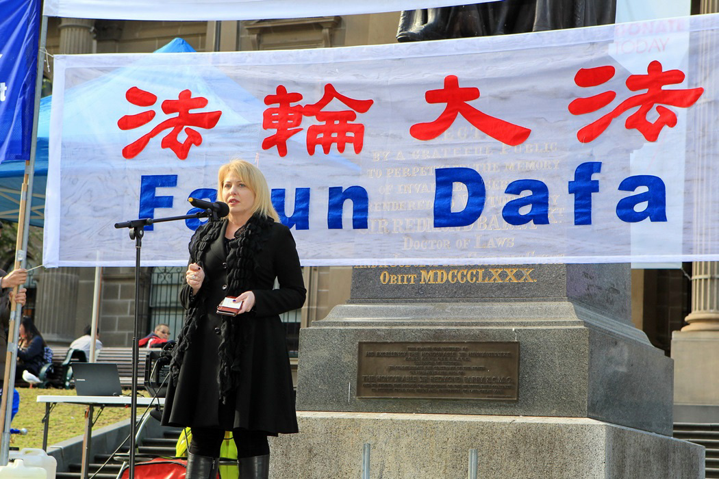 维州绿党联邦参议员莱斯(Janet Rice)女士在集会演讲中说:“当我想起法轮功学员在中国遭受的非人虐待时,内心非常难过,总是在想我们能做些什么。我一直支持他们的抗议活动,是希望引起人们关注中国法轮功学员这10多年来的遭遇。”