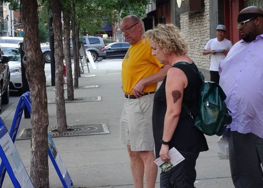 当天下午,法轮功学员在芝加哥中领馆对面的街道上集体炼功。舒缓的音乐飘过几个街区之外,黄色的炼功服在夕阳下格外引人注目,很多路人驻足,详细了解法轮功及其在中国无辜遭迫害的真相。随后,法轮功学员代表在集会上发言,呼吁国际社会制止中共暴行。