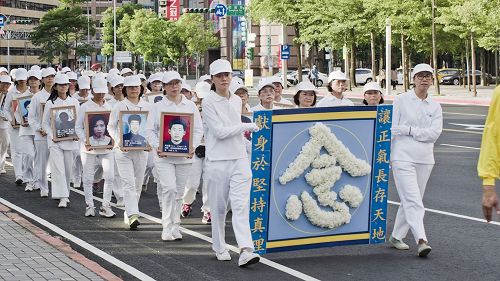 【明慧网二零一七年七月十八日】(明慧记者刘文新台湾台北采访报导)二零一七年七月十六日,台湾法轮功学员在大陆游客必到的一零一大楼旁、台北市政府前的市民广场前举行“法轮功学员反迫害十八周年”,来自大台北、桃竹苗、宜兰花莲超过一千五百多的法轮功学员游行的队伍,沿途吸引各界人士的目光夹道观看,高喊:“法轮功,加油!”声援法轮功反迫害,坚持正义良知,支持起诉迫害法轮功的元凶江泽民。