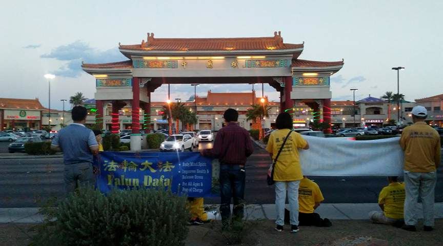 【明慧网二零一七年七月十九日】一九九九年七月二十日,中共发动对法轮功群体的非法残酷迫害。今年的七月二十日是法轮功学员和平反迫害十八周年。七月十五日晚,美国拉斯维加斯的法轮功学员在中国城举行集会,哀悼被迫害致死的法轮功学员,同时呼吁社会各界共同制止中共的罪恶。
