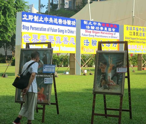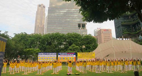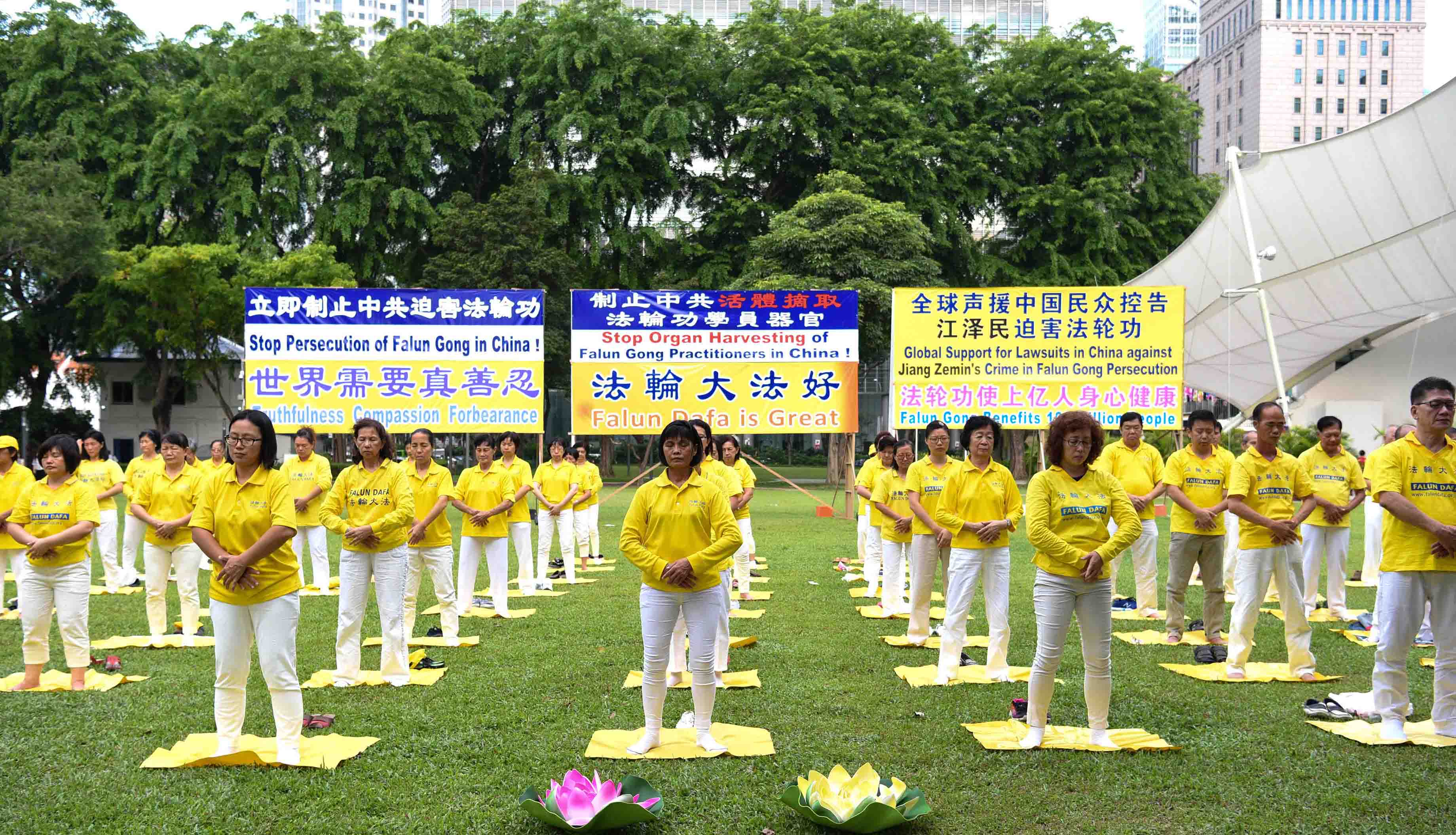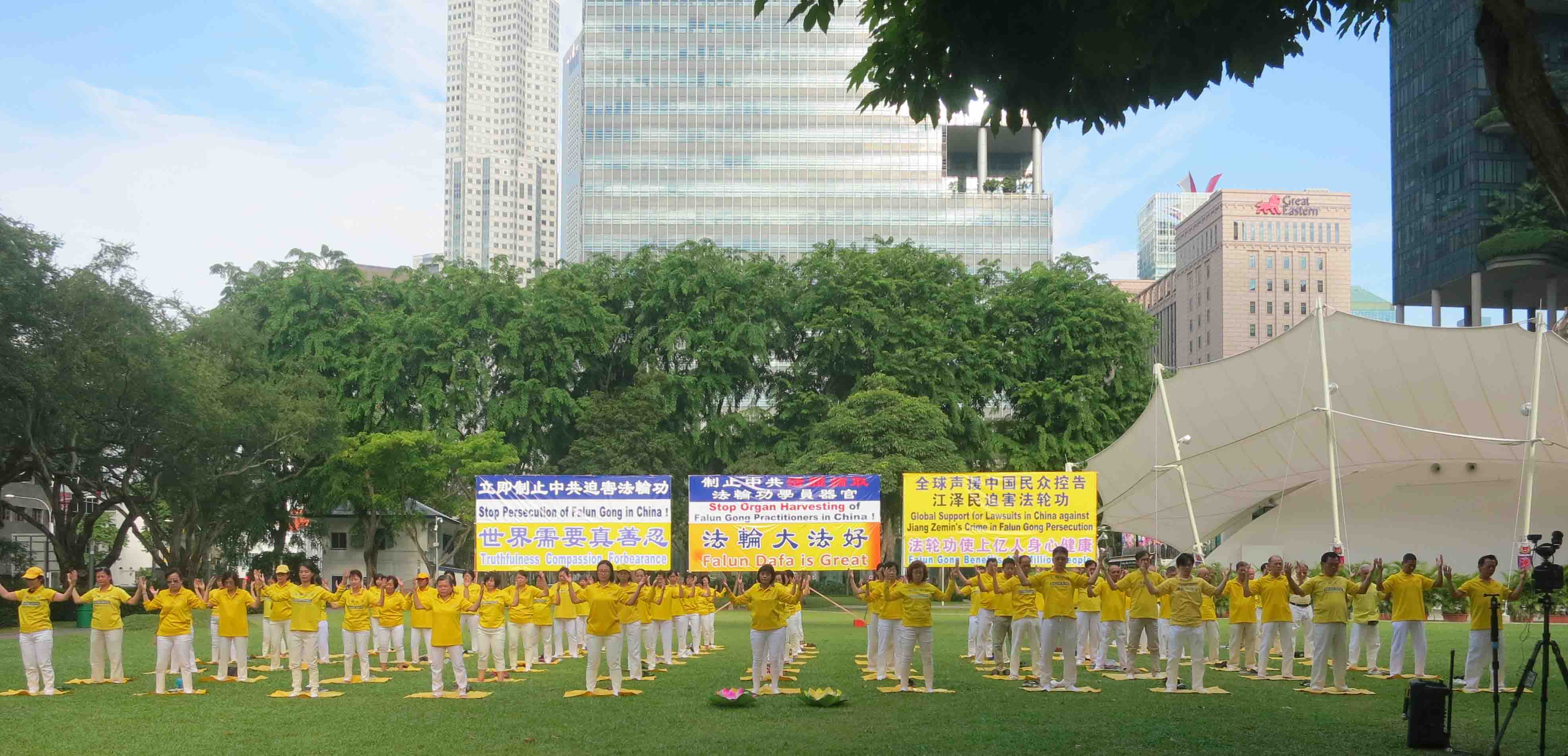 【明慧网二零一七年七月二十一日】二零一七年的七月二十日是法轮功学员和平反迫害十八周年的纪念日。连日来,世界各地的法轮功学员举办各种活动,呼吁共同终结迫害。七月十七日,新加坡法轮功学员在芳林公园以功法演示、反活摘征签、烛光悼念、真相图文展示等形式,分享法轮大法的美好,悼念被中共迫害致死的中国同修。