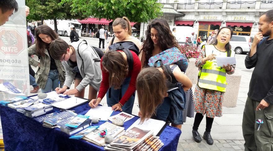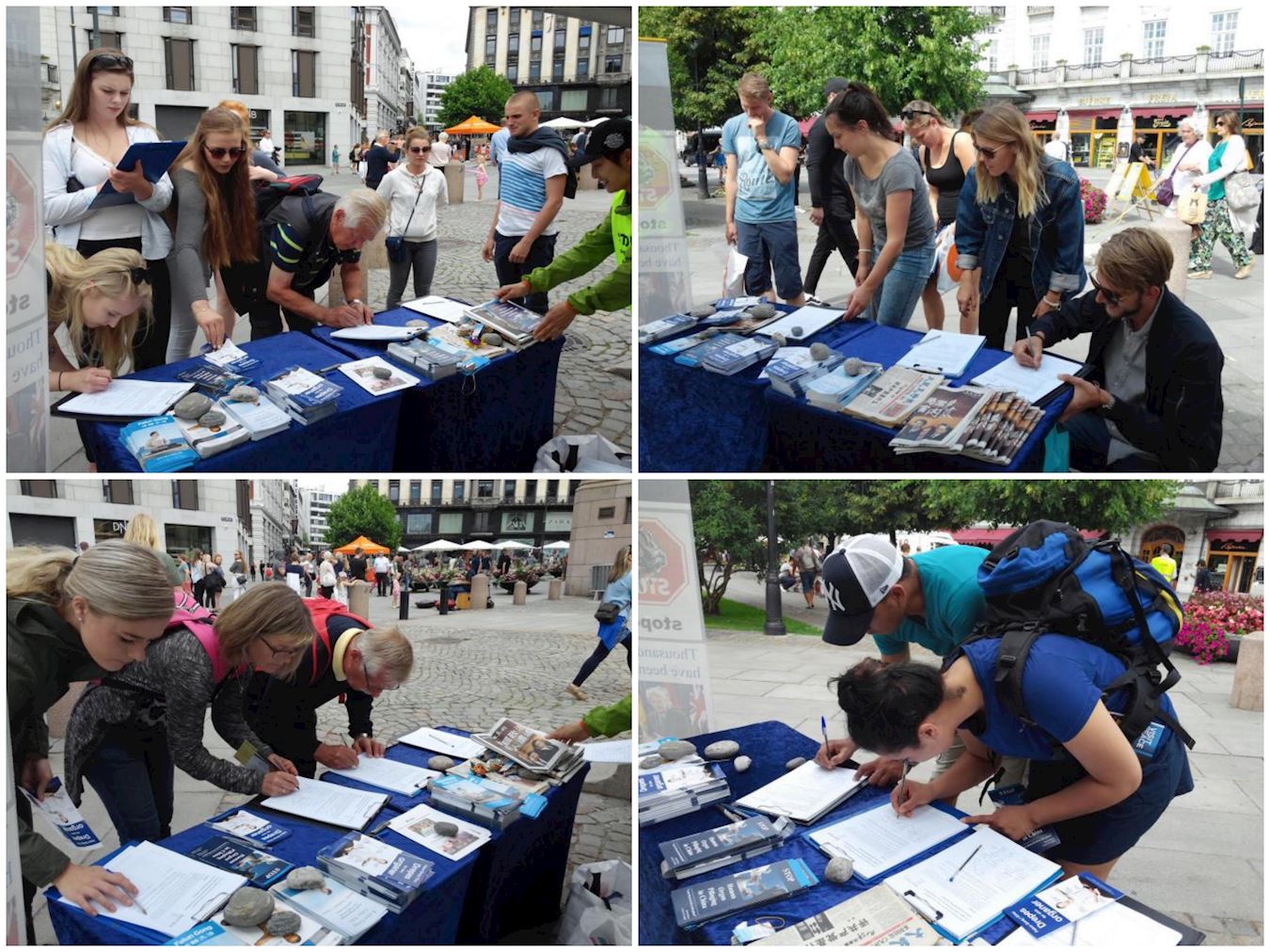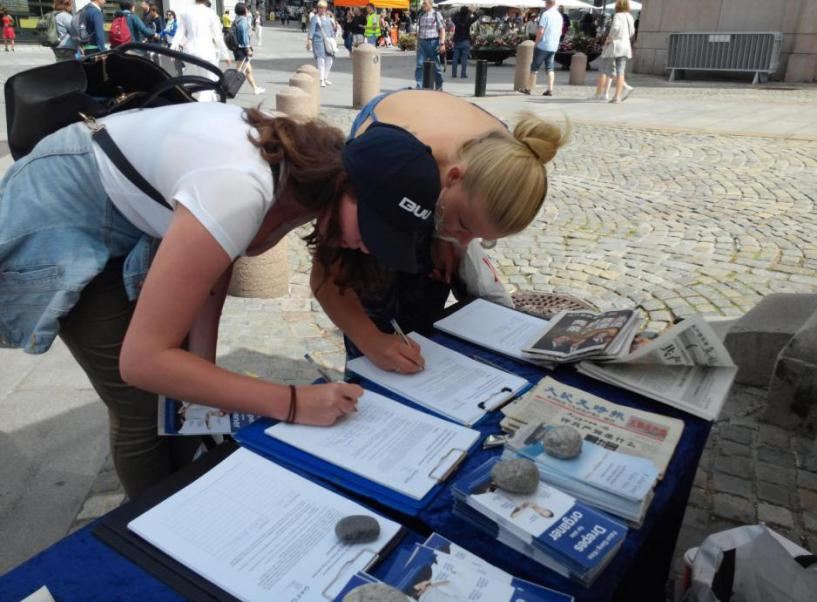 挪威民众淳朴而又善良,明白真相的民众震惊之余,纷纷签名制止迫害,反对中共暴行,并表达自己支持正义、制止邪恶的心声。