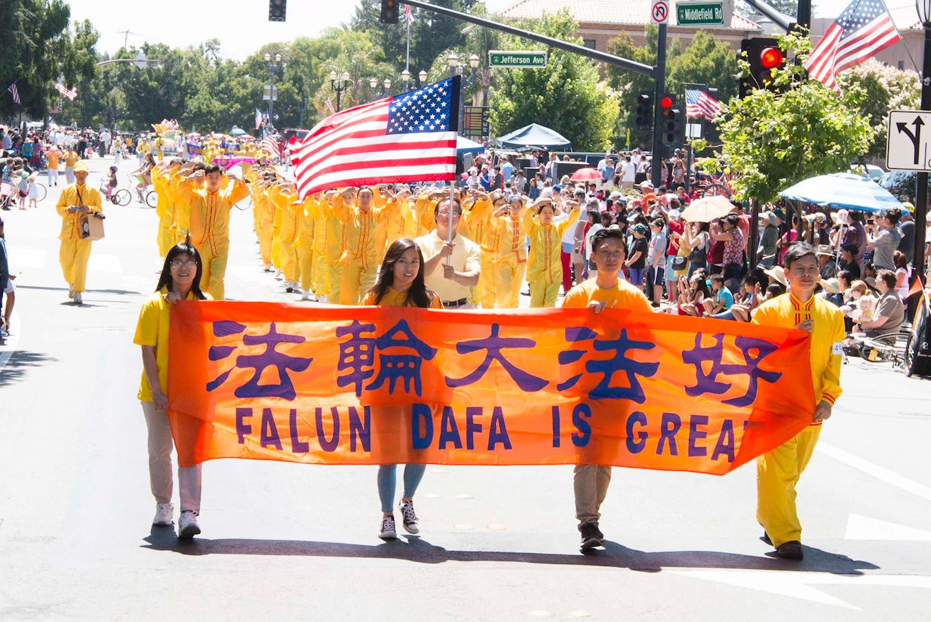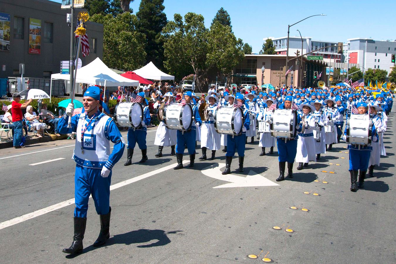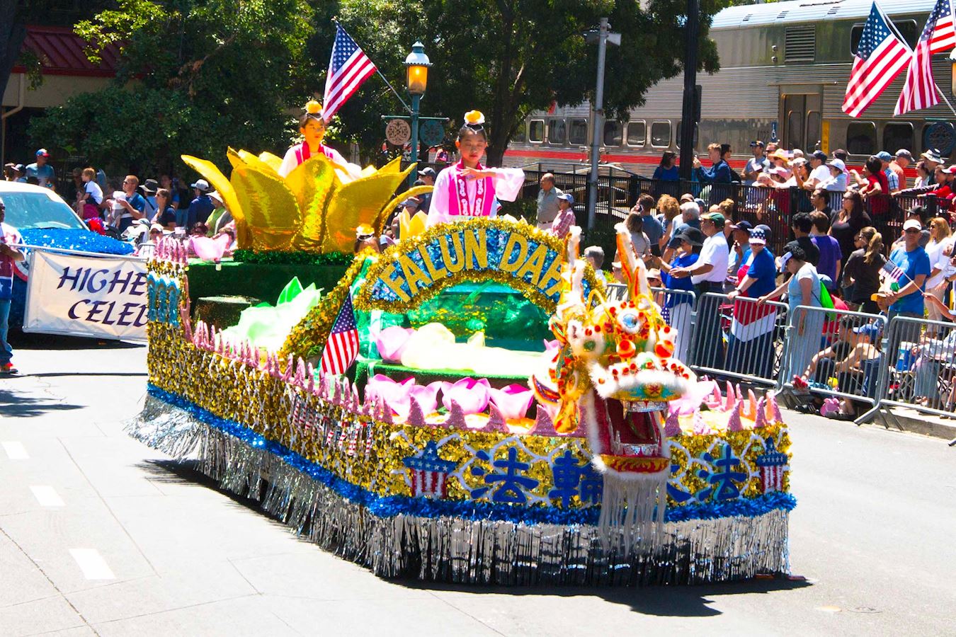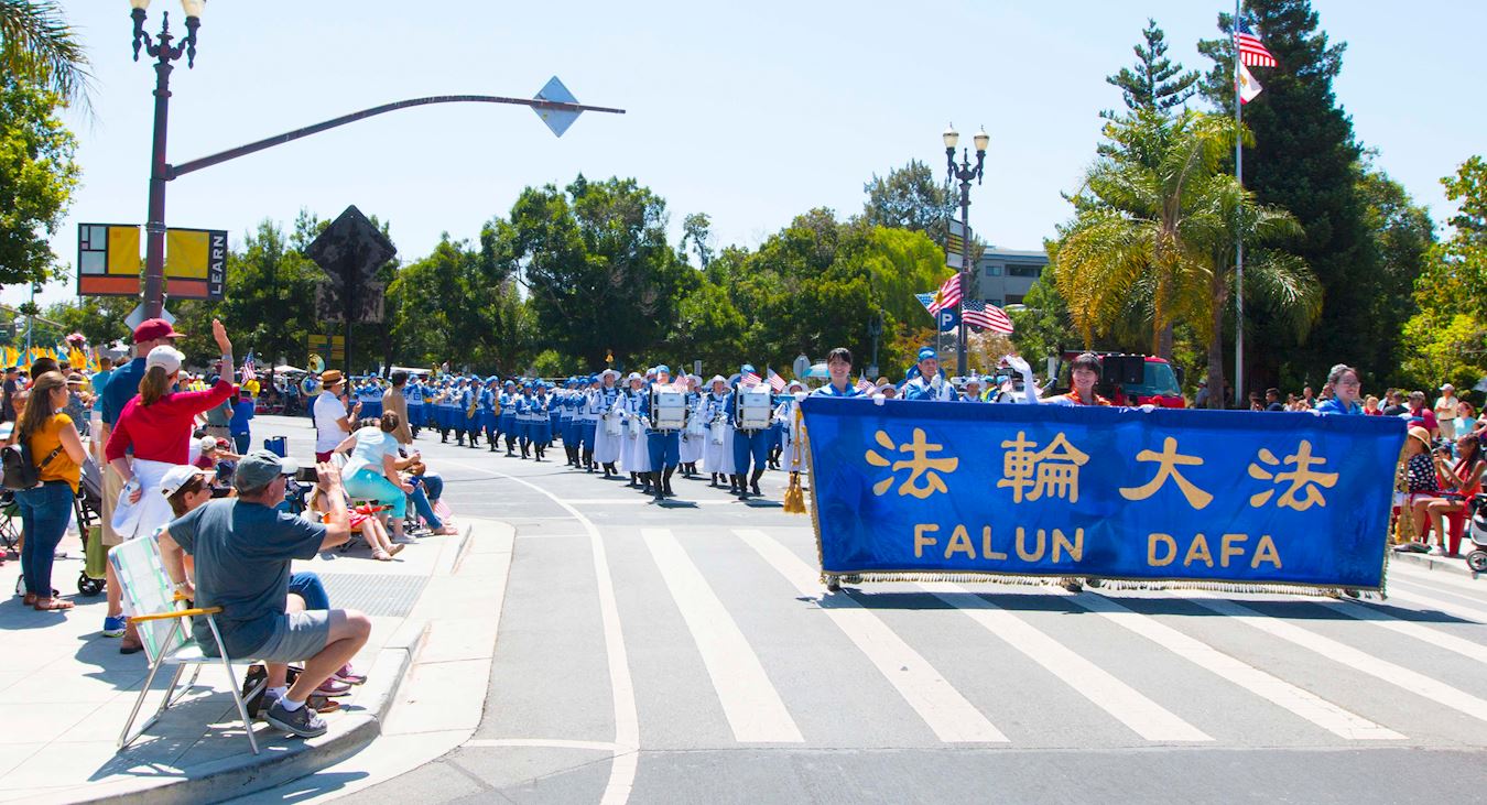 【明慧网二零一七年七月五日】(明慧记者王英、李若云美国旧金山湾区报道)二零一七年七月四日是美国独立日,旧金山湾区的法轮功学员应邀参加了红木城独立日游行,受到主办方和观众的欢迎。主办方感谢法轮大法的队伍带来祥和与能量。法轮大法花车获得了游行最高奖。法轮大法美西天国乐团获得了乐团社区组第一名。