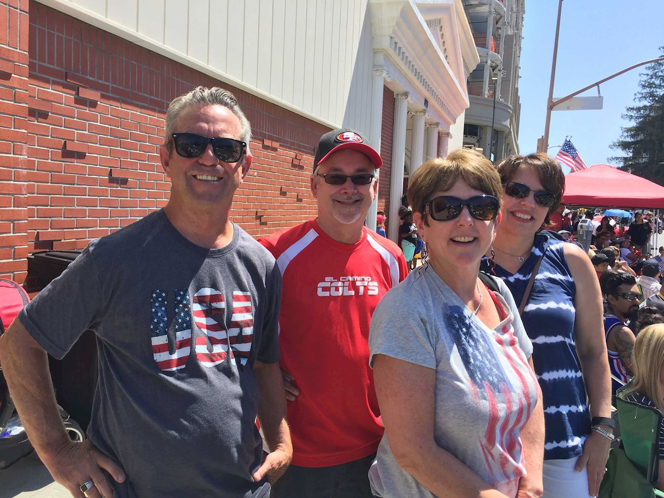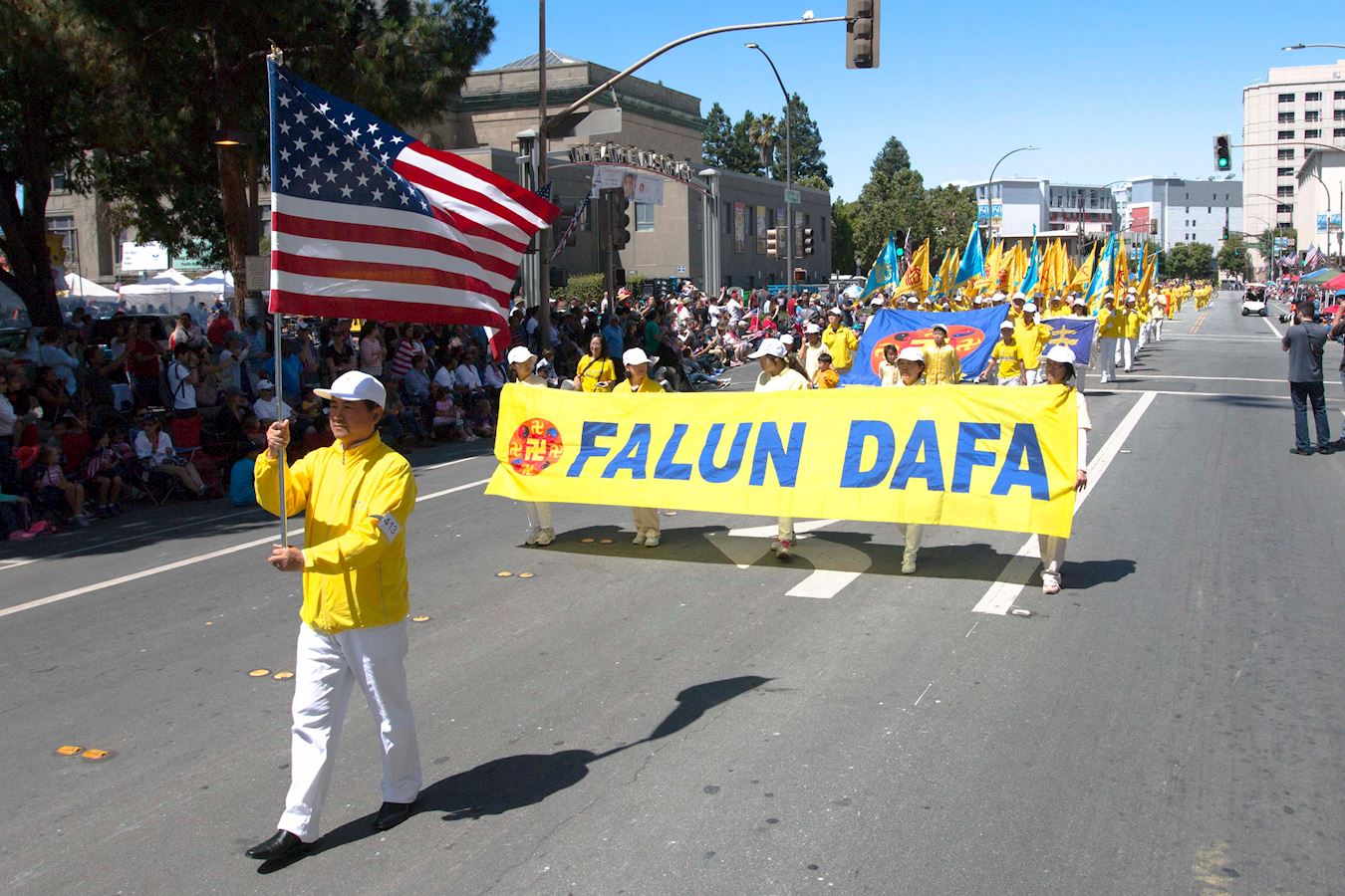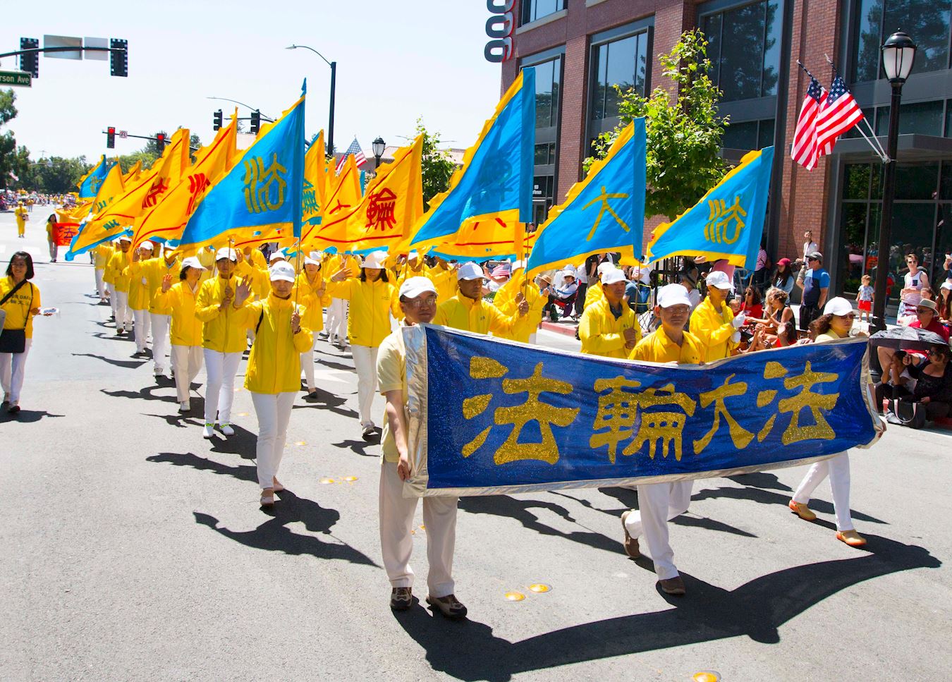 【明慧网二零一七年七月五日】(明慧记者王英、李若云美国旧金山湾区报道)二零一七年七月四日是美国独立日,旧金山湾区的法轮功学员应邀参加了红木城独立日游行,受到主办方和观众的欢迎。主办方感谢法轮大法的队伍带来祥和与能量。法轮大法花车获得了游行最高奖。法轮大法美西天国乐团获得了乐团社区组第一名。
