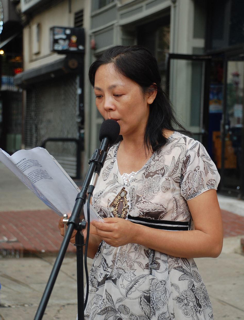 然而在中国大陆,十八年来中共采取各种暴力和造假宣传来污蔑和迫害法轮功。来自安徽省合肥市的郭女士在一九九九年中共迫害法轮功后因为不放弃信仰,先后在拘留所、精神病院、洗脑班、看守所被关押共七次,其中在2000年被强制关押精神病院期间,在身体健康的情况下被注射破坏中枢神经的药物长达二十二天。她的父母也不断地被610办公室人员骚扰与威胁,先后离开人世。郭女士在集会的发言中说:“每次回顾那些经历,我都会痛苦、流泪。但揭露那里的迫害是我的责任。我希望全世界每一个人都能了解大法真相,支持正义与良知和制止迫害。真心希望能早日结束那里的迫害,让我回到自己的祖国”。