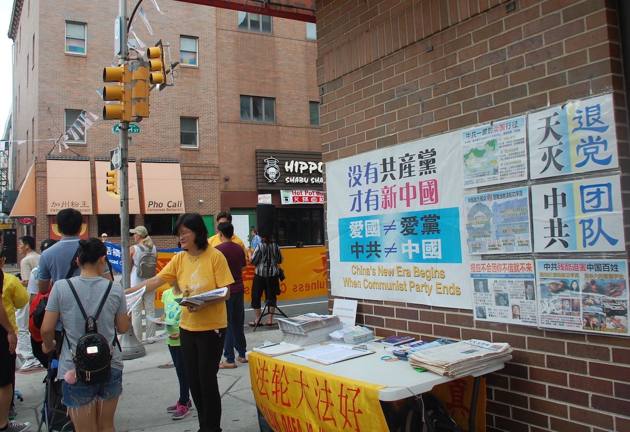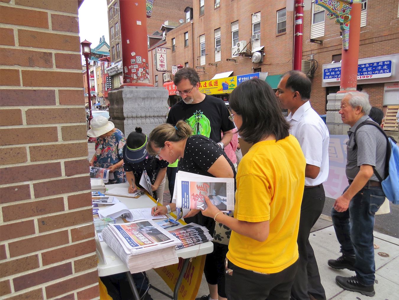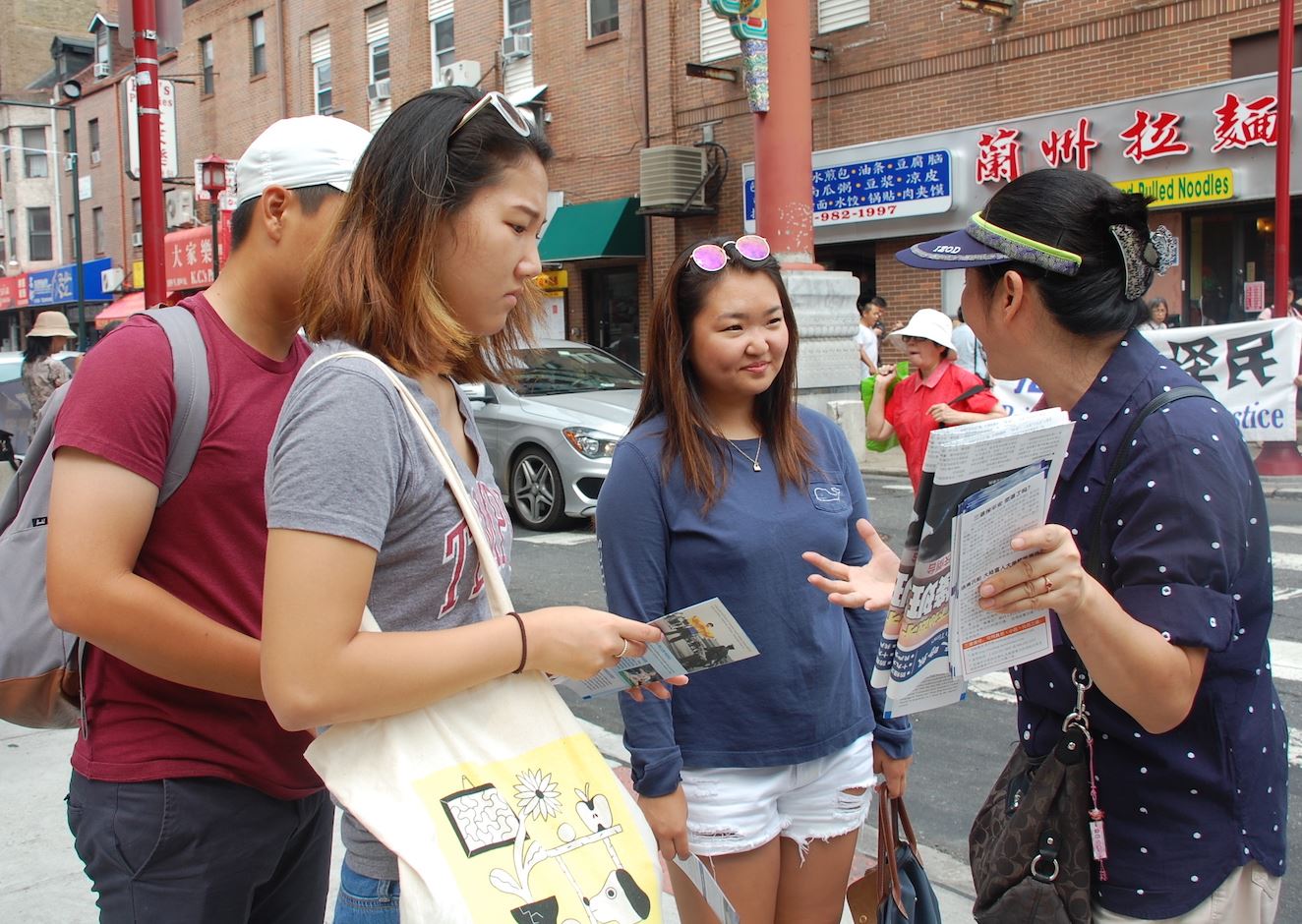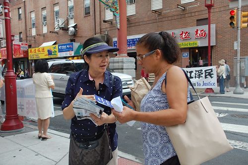 图1:8月12日,大费城地区部份法轮功学员于在中国城,呼吁制止还在中国发生的迫害。