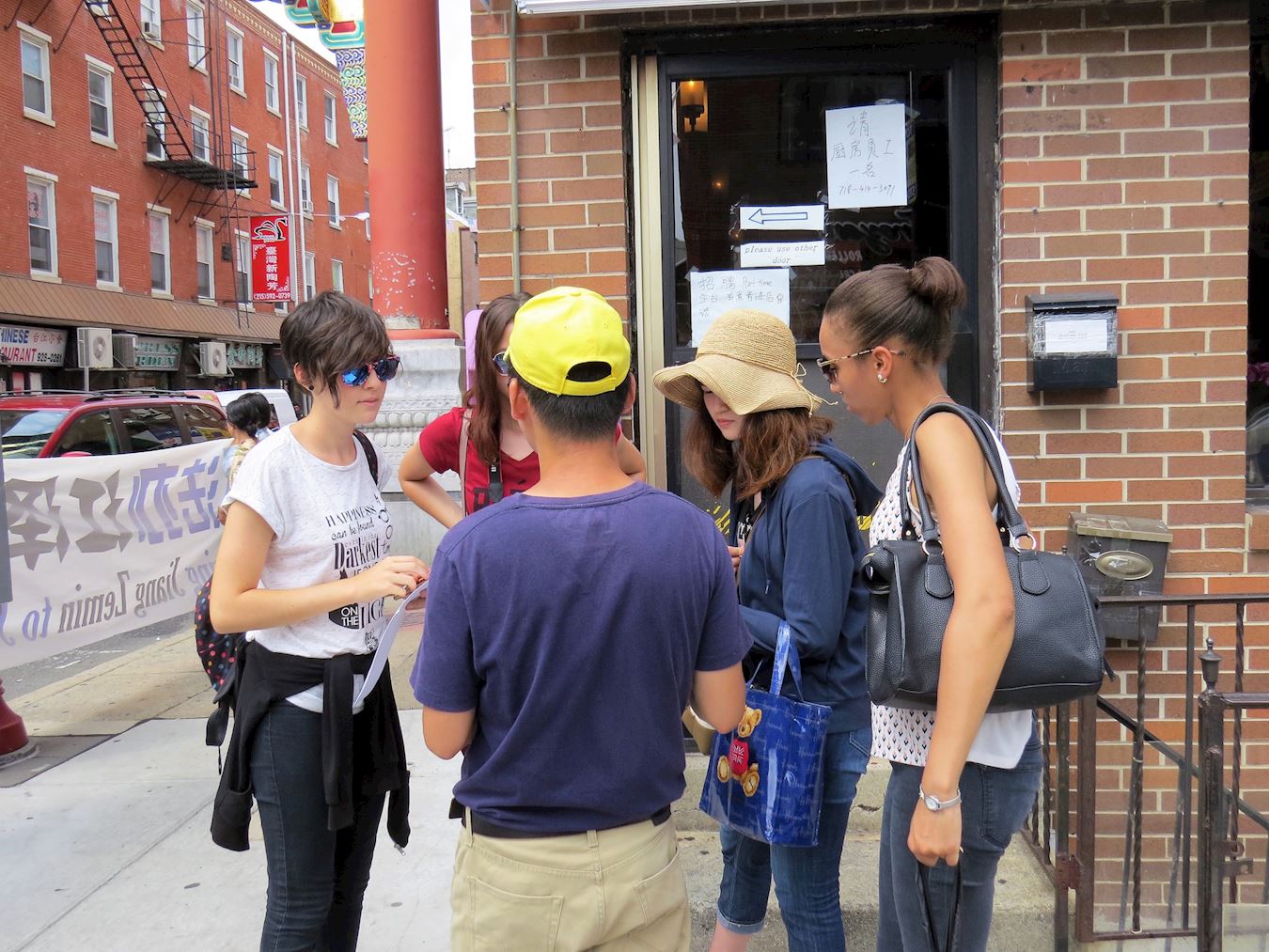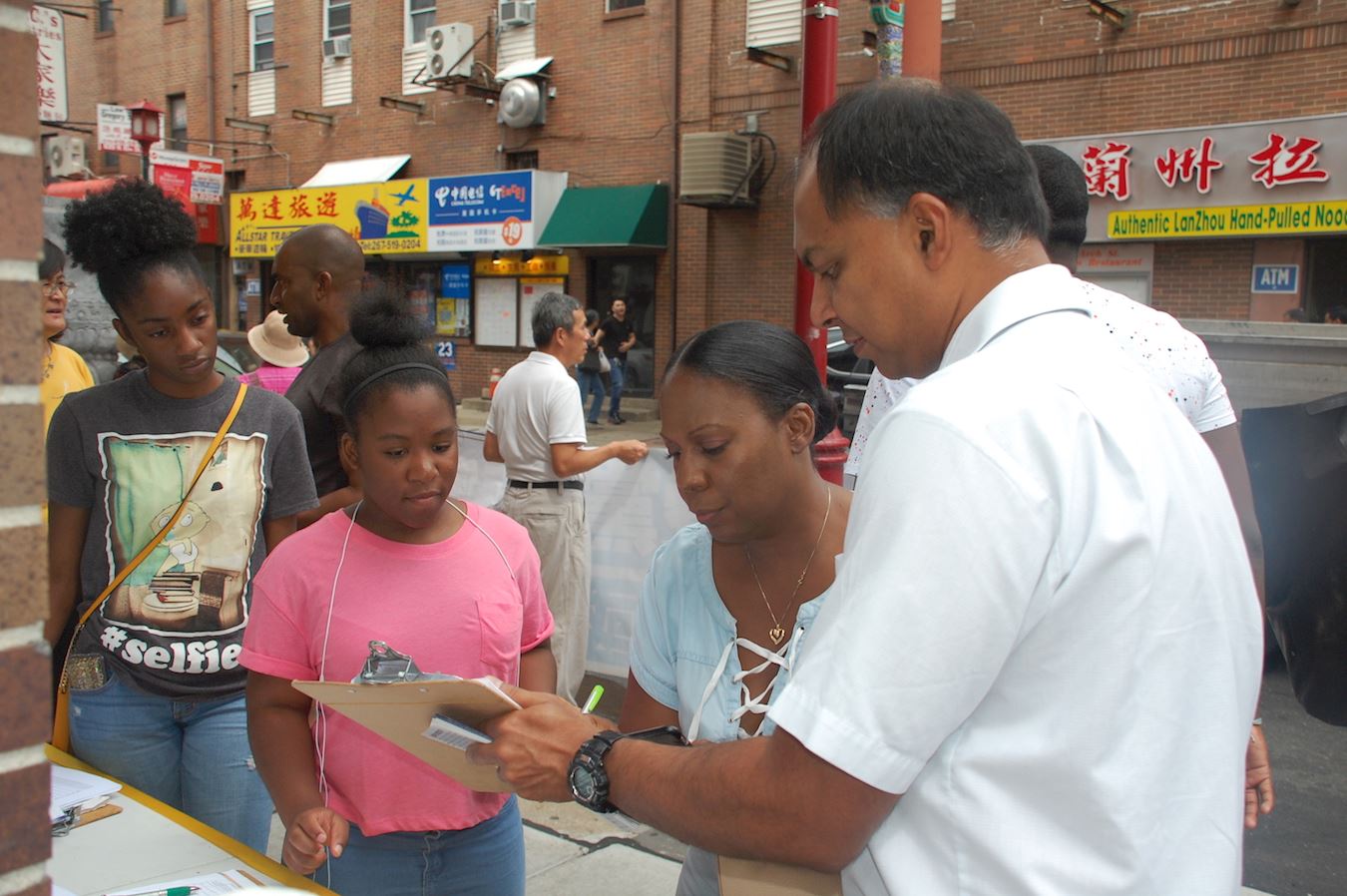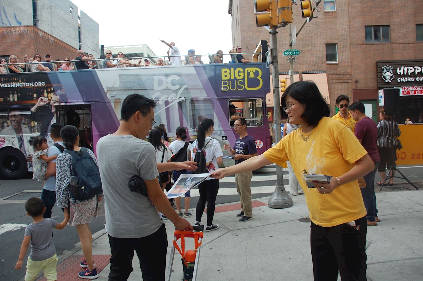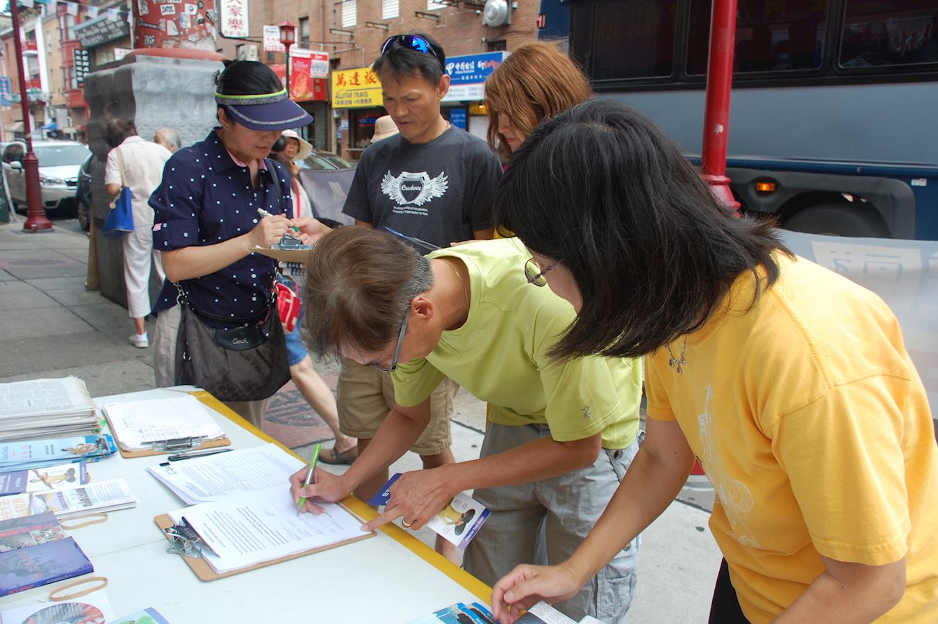 图1:8月12日,大费城地区部份法轮功学员于在中国城,呼吁制止还在中国发生的迫害。