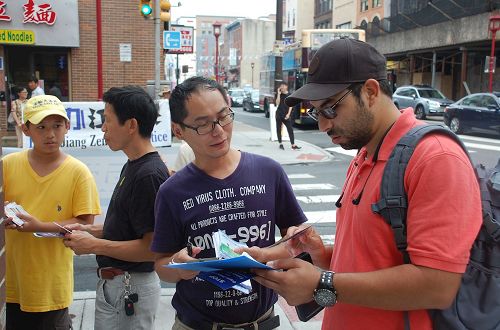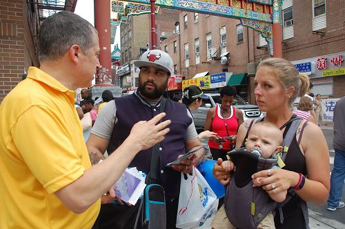 在费城中国城介绍法轮功(图)