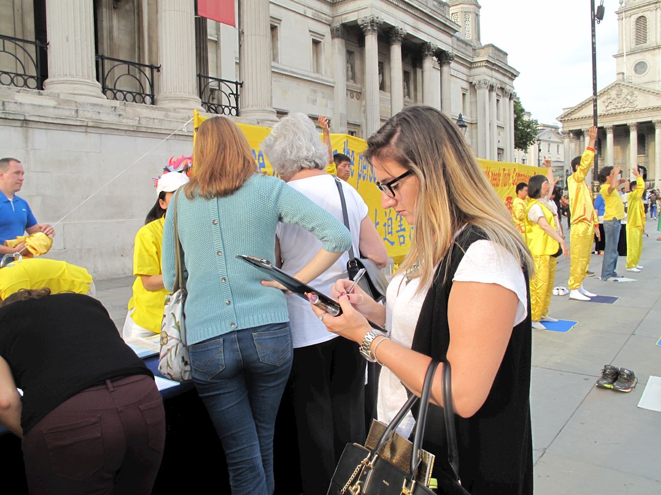 ![]() 图15:在伦敦特拉法加广场(Trafalgar Square),了解真相的民众签名支持法轮功反迫害 |
