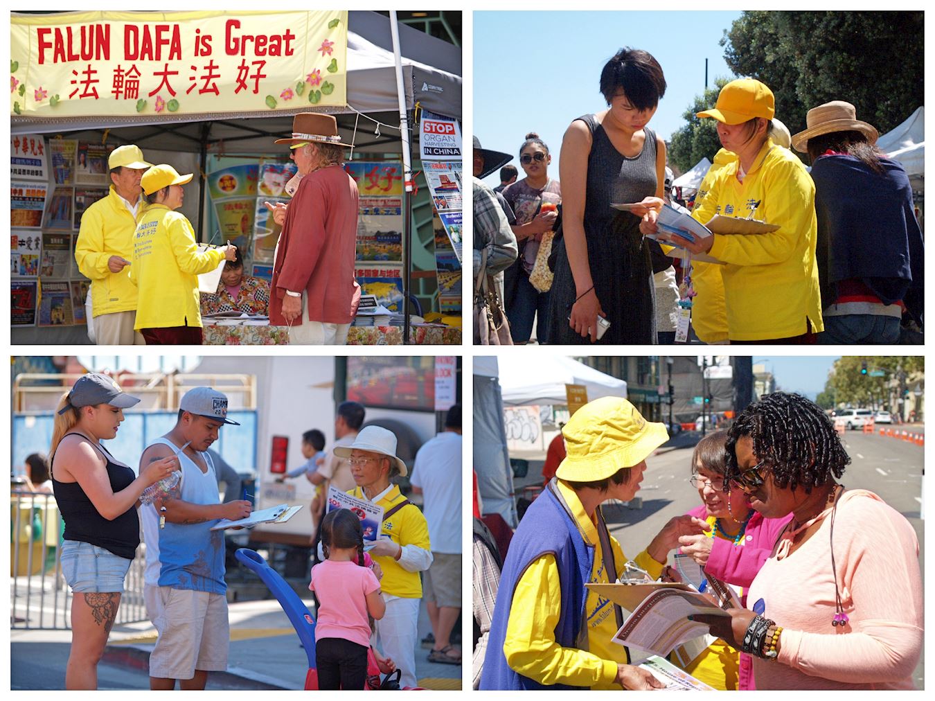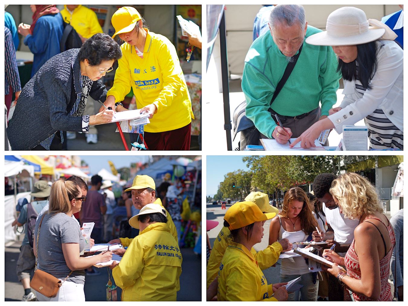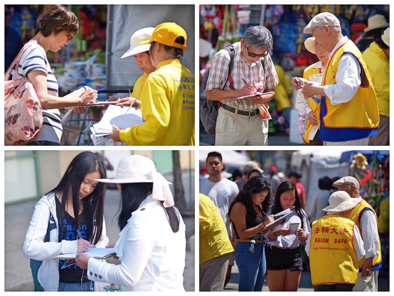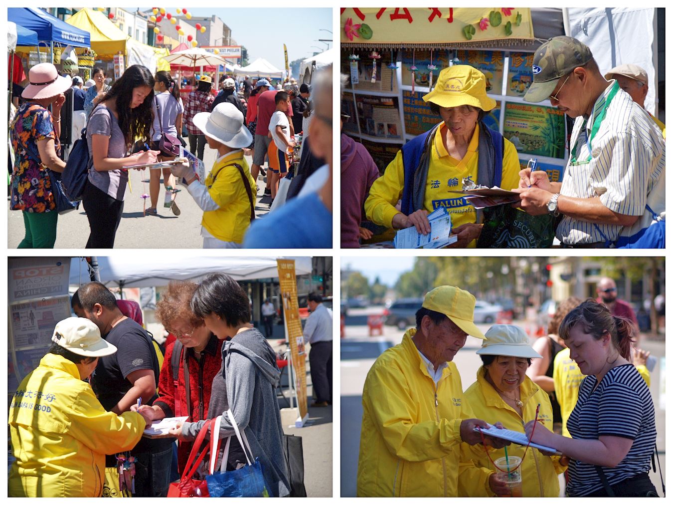 与往年一样,当地的法轮功学员也来此设立了展位,向民众传播法轮功的真相,揭露中共活摘法轮功学员器官的罪行,同时征集签名制止迫害、制止活摘,许多华人民众表示已听说过中共活摘的罪行,并表示谴责,许多人在制止迫害、制止活摘的征签表上签名。有的还声明了三退,有的表示想学法轮功 。