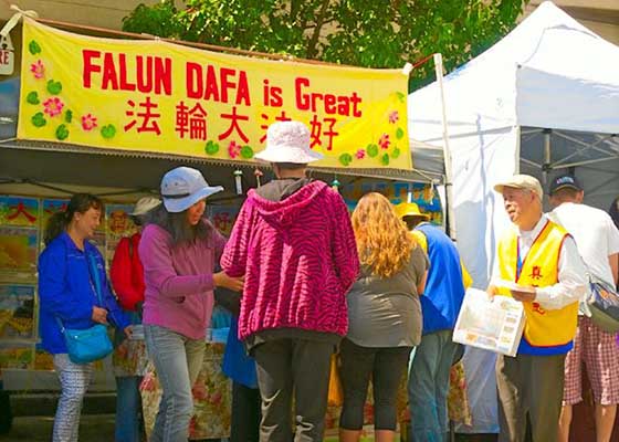 北加州奥克兰市聚集许多华人,8月26、27日,在该市中国城举行中秋街会,吸引各族裔游客光顾,法轮功学员也参加了街会并设立展位。