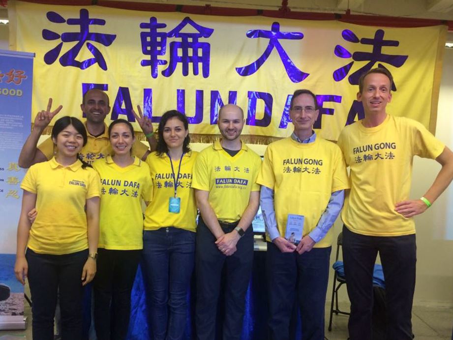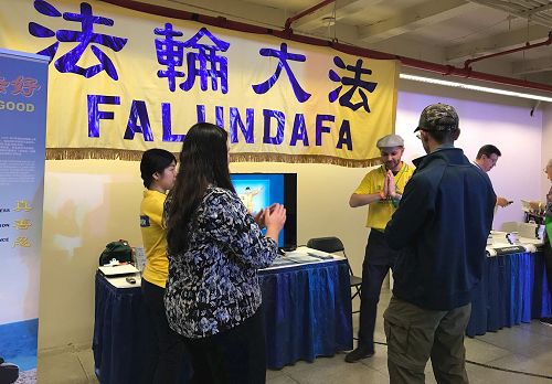 【明慧网二零一七年九月十五日】二零一七年九月九日和十日纽约曼哈顿举办素食博览会,人们来到这个展览寻求有益于身心健康的食品和生活方式。当地法轮功学员也参加了本次博览会,法轮功的展位吸引了寻找健康的纽约客们。