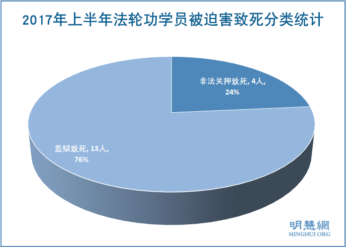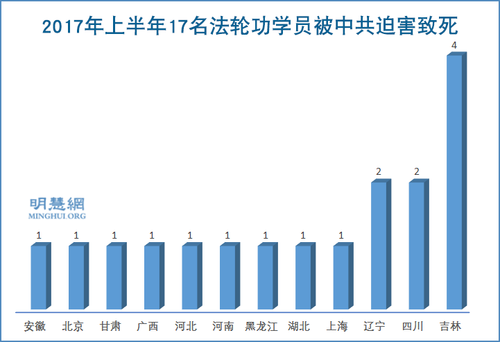 图1:2017年上半年17名法轮功学员被中共迫害致死