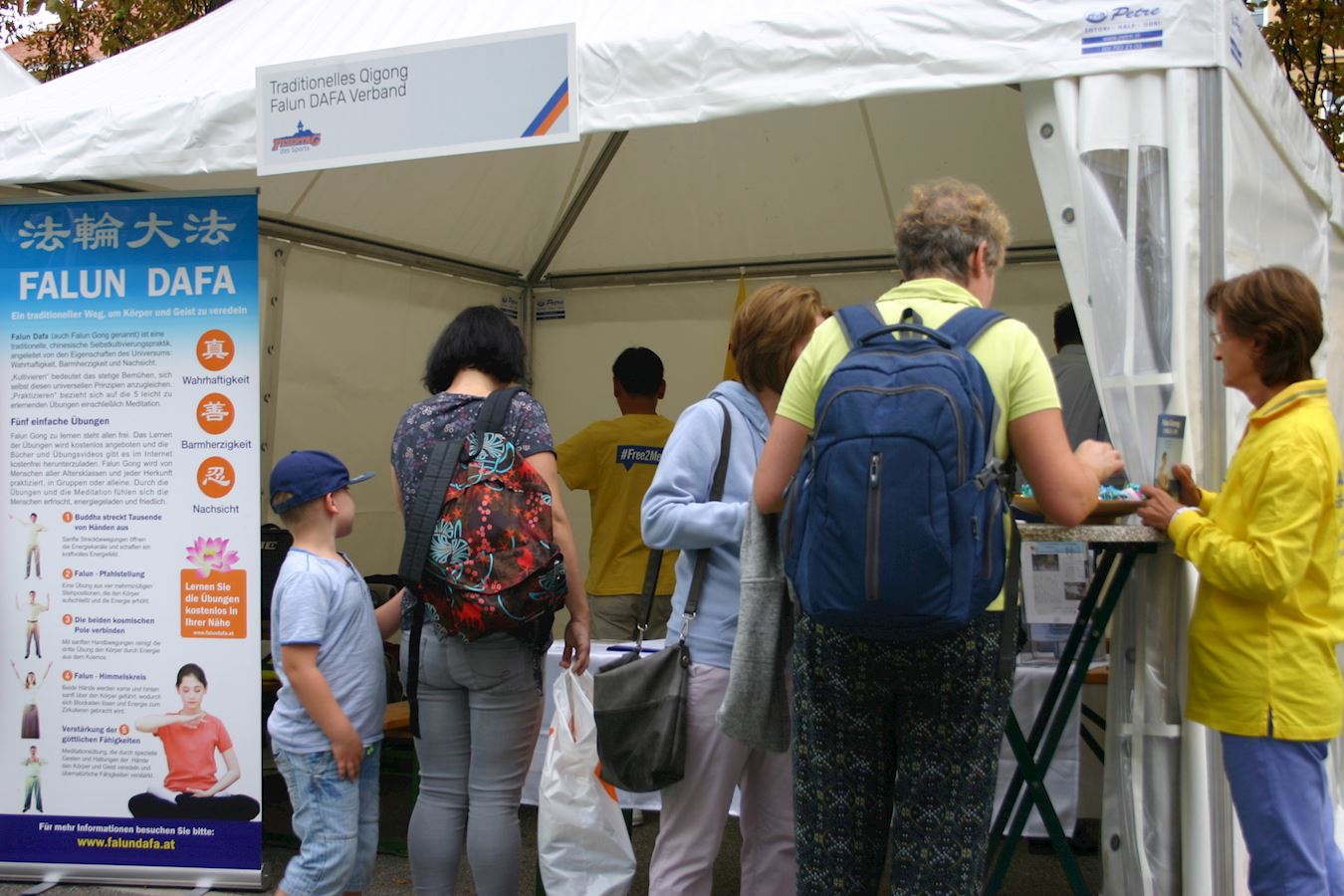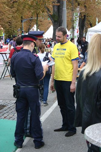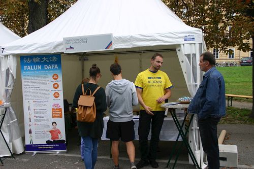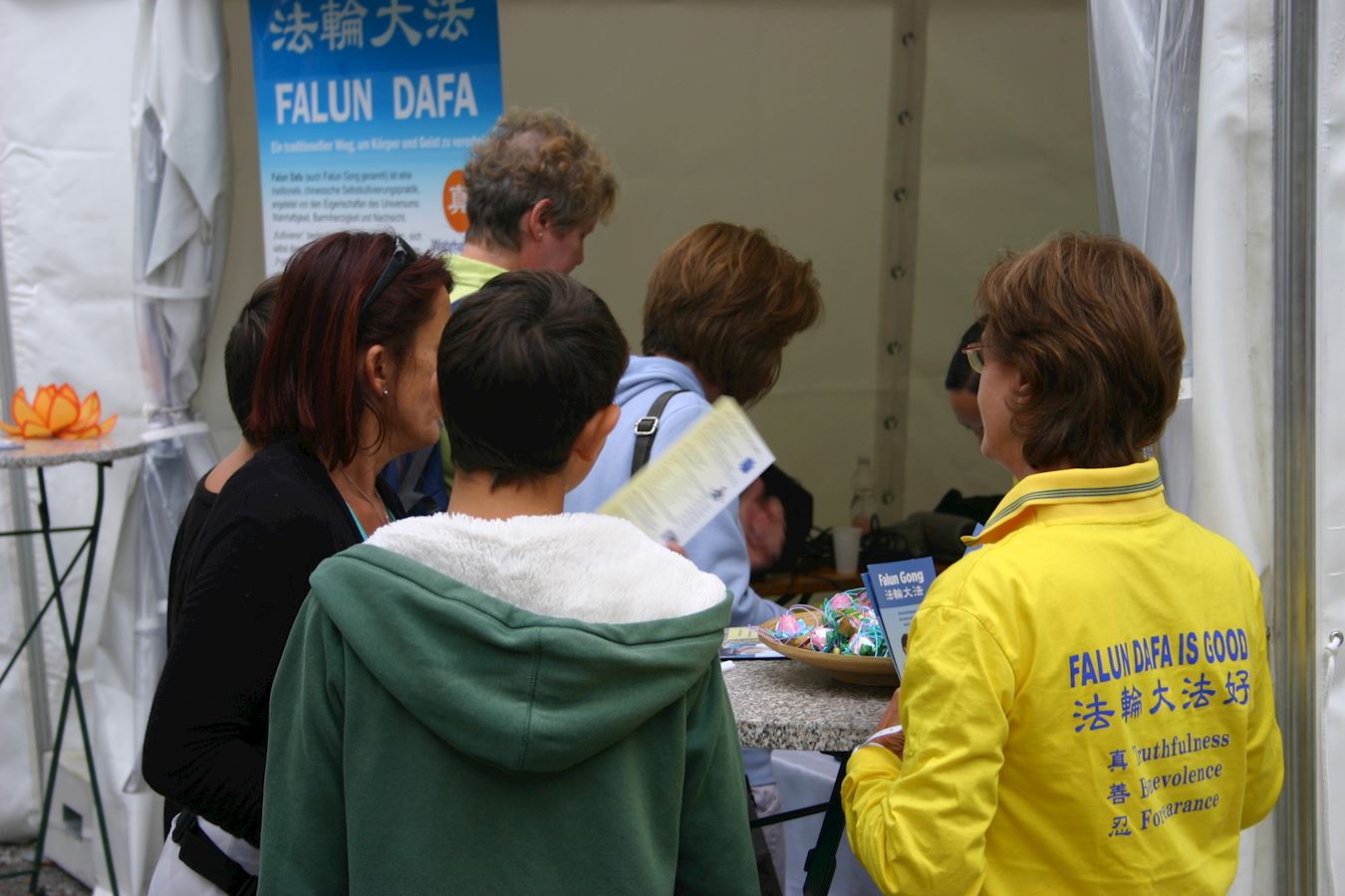 法轮功学员们也借此机会,向民众介绍了法轮功和受到中共迫害的真相。