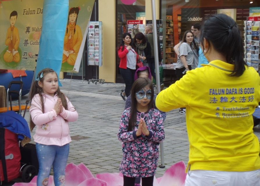 '图7:在拜罗伊特市的儿童节上,孩子们学炼法轮功'