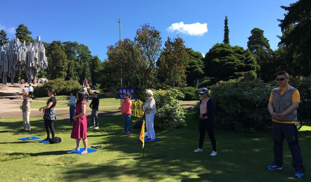 ![]() 图3:西贝柳斯景点,法轮功学员集体炼功 |