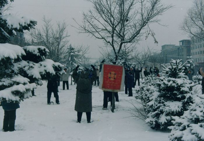 图1:即使在冬天最冷的日子里也坚持室外炼功(一九九六年拍摄)