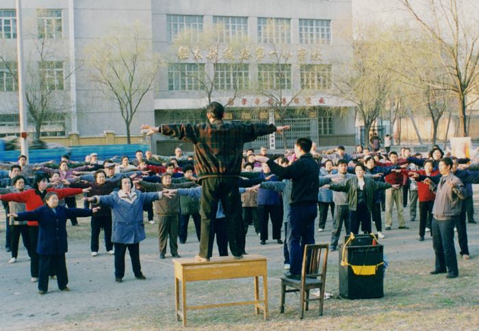 在公园、广场举行大型集体炼功活动,到九八年达到鼎盛,同时走向农村及周边市县。