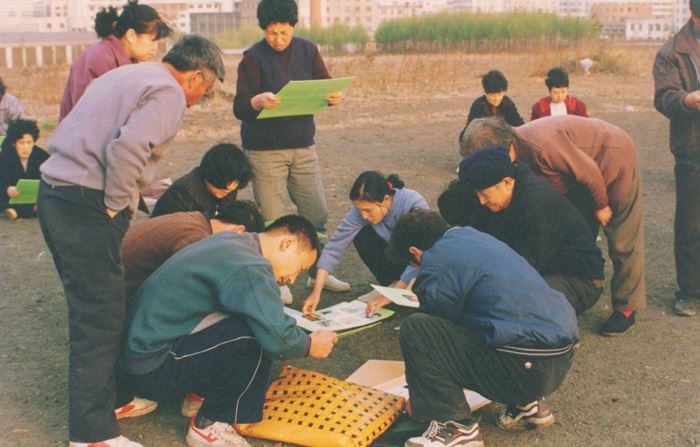 图6:利用周日举行集体炼功(一九九八年拍摄)